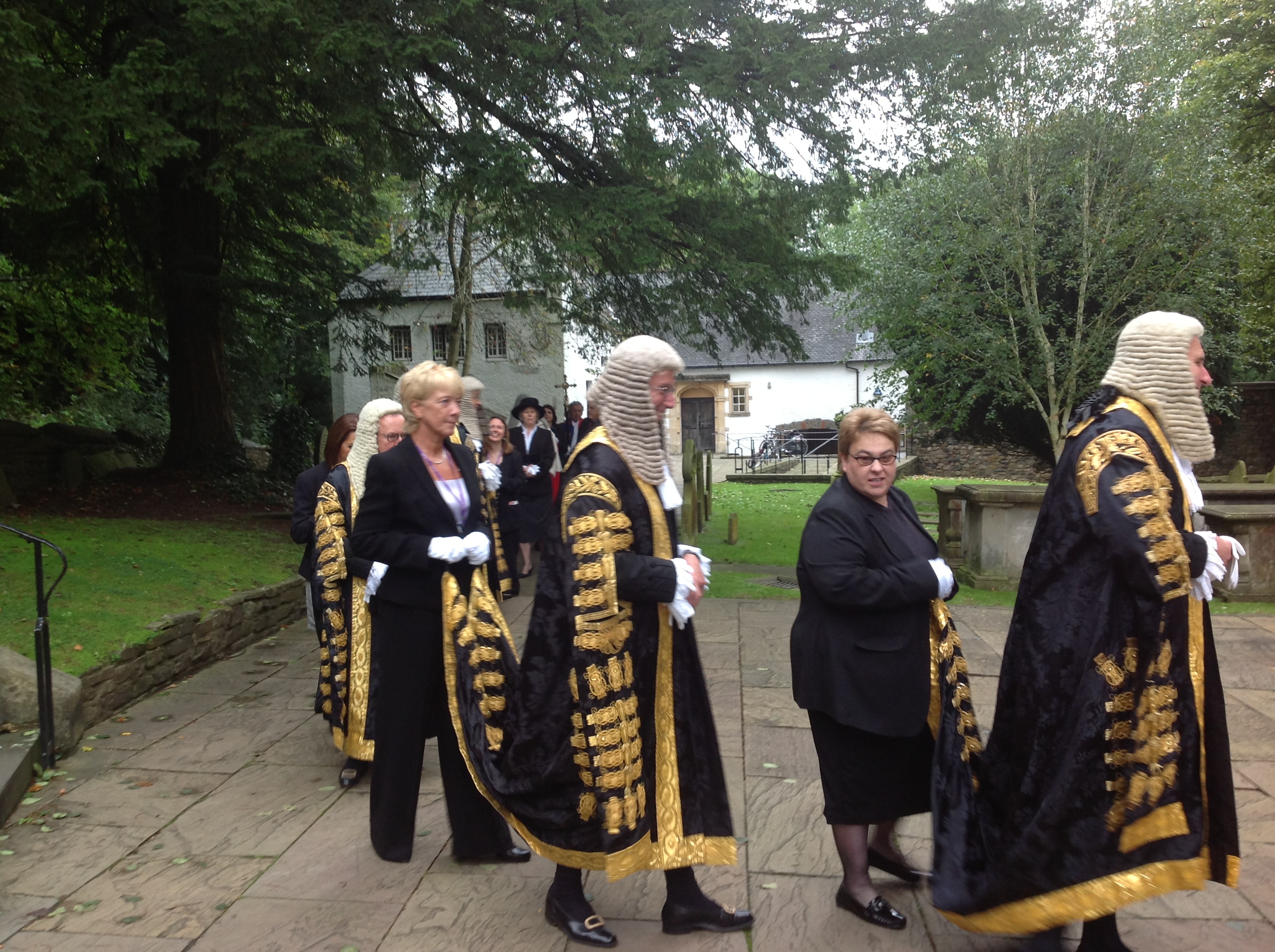 대법관, 영국 하원 의장, 및 기타 고위 인사들도 트레인이 있는 유사한 자수 검은색 로브를 착용한다.[12]