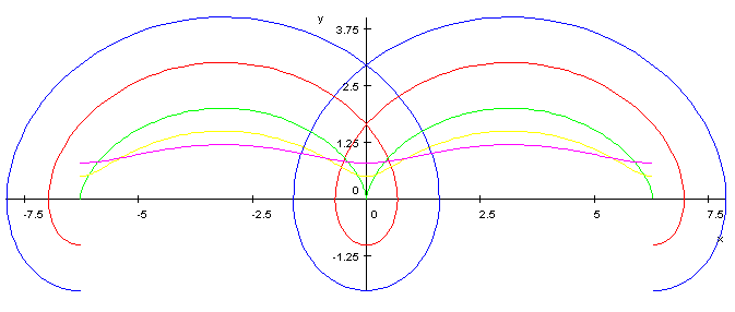 • ''r'' < ''r''일 때, 1회전으로 ''x''축과 2번 만난다.