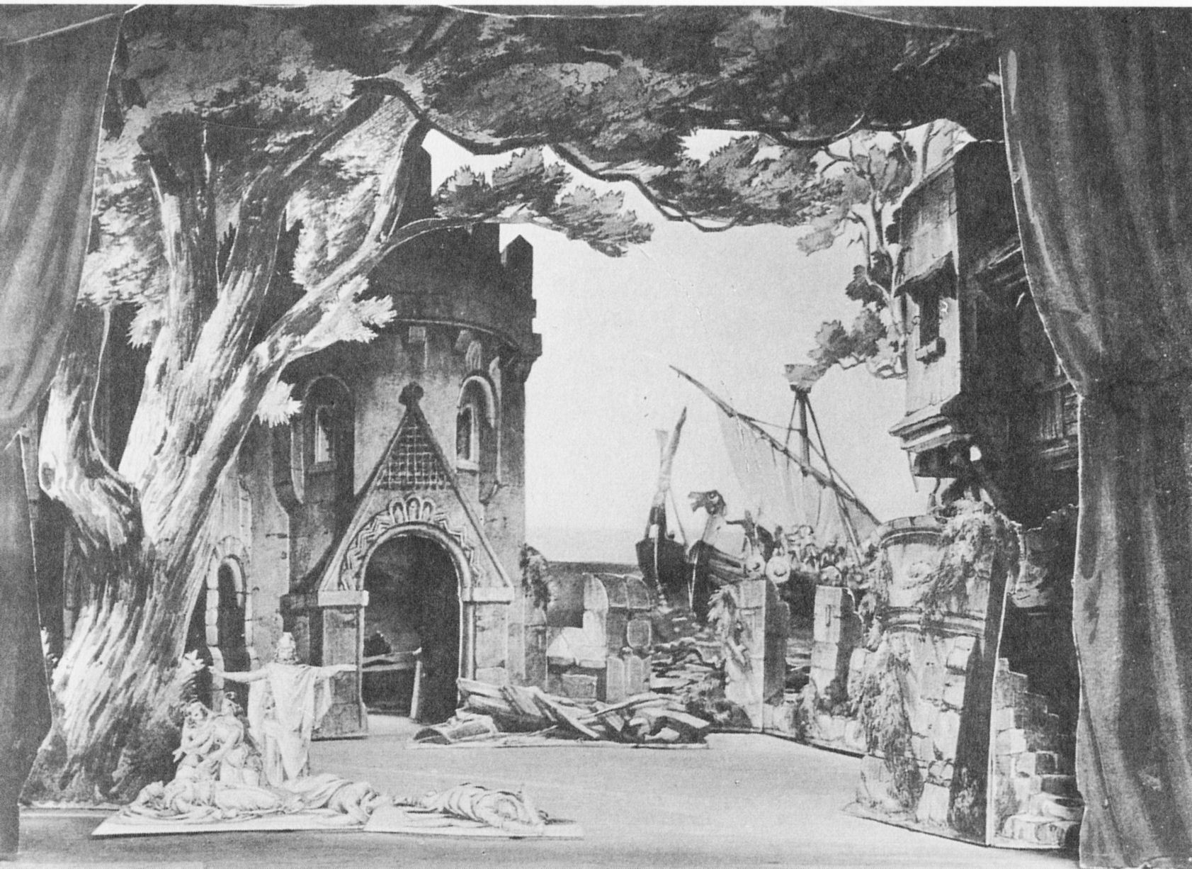 안젤로 콰글리오(Angelo Quaglio)가 3막 초연 무대를 위해 제작한 모형 1막은 마르크 왕과 결혼하기 위해 콘월로 향하는 배 위에서 시작된다. 아일랜드의 공주 이졸데는 자신을 데려가는 기사 트리스탄에게 강한 분노와 배신감을 느낀다. 과거 자신의 약혼자 모롤트를 죽인 트리스탄을 간호했던 기억과, 그가 자신을 삼촌인 마르크 왕에게 보내는 상황에 모멸감을 느낀 이졸데는 트리스탄과 함께 독약을 마시고 죽으려 한다. 하지만 시녀 브랑갱이 몰래 독약을 사랑의 묘약으로 바꿔치기하고, 이를 마신 트리스탄과 이졸데는 서로에게 격정적인 사랑을 느끼게 된다. 2막에서는 마르크 왕이 사냥을 떠난 밤, 트리스탄과 이졸데가 왕궁 정원에서 밀회를 가진다. 두 사람은 밤의 세계에서만 진정한 사랑을 나눌 수 있다고 믿으며 열정적인 사랑을 고백한다. 그러나 날이 밝아오면서 멜롯에게 발각되고, 마르크 왕은 조카와 아내의 배신에 깊은 슬픔을 느낀다. 멜롯과의 결투에서 트리스탄은 일부러 칼을 피하지 않고 치명상을 입는다. 3막은 트리스탄의 고향인 브리타니의 성 카레올을 배경으로 한다. 부하 쿠르베날의 간호를 받으며 죽어가던 트리스탄은 오직 이졸데만이 자신을 구할 수 있다고 믿으며 그녀를 애타게 기다린다. 마침내 이졸데가 도착하지만, 트리스탄은 그녀의 품에서 숨을 거둔다. 뒤이어 도착한 마르크 왕은 브랑갱에게 모든 진실을 듣고 두 사람을 용서하려 했음을 밝힌다. 하지만 이졸데는 트리스탄의 죽음 앞에서 환영을 보며 유명한 아리아인 '사랑의 죽음'(Mild und leise wie er lächeltde)을 부르고 그의 뒤를 따라 숨을 거둔다.