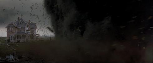 영화 속 토네이도는 컴퓨터 애니메이션으로 제작되었다.[25] 입자 시스템 전문가 하비브 자르가푸르는 다이나메이션 소프트웨어를 사용하여 디지털 토네이도의 기초를 개발했는데, 이는 회전하며 빠르게 움직이는 깔때기 구름을 구성하는 수백만 개의 작은 입자로 구성되었으며, 자르가푸르는 이를 작은 아이스크림 덩어리를 함께 포장하는 것에 비유했다.[25] 이러한 토네이도의 음향 효과를 구성하기 위해 드 본트는 사자 울음소리, 호랑이 그르렁거림, 낙타 신음 소리, 제트 엔진 윙 소리 등 다양한 음향 효과를 결합하여 녹음했다.[26] CGI로 애니메이션화된 다른 특수 효과로는 전신주, 나무, 트럭, 트랙터, 집 전체 등이 있었다.[26] CGI 암소는 1995년 영화 《쥬만지》의 CGI 얼룩말을 기반으로 제작되었다.[27]