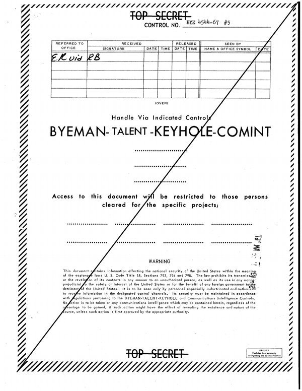 - 바이먼(BYE): CORONA 및 OXCART 등 특정 항공/위성 정찰 시스템을 다루던 은퇴한 제어 시스템이다. 대부분의 내용은 TK로, 특별 취급 내용은 리저브(RSV)로 이전되었다.[23]