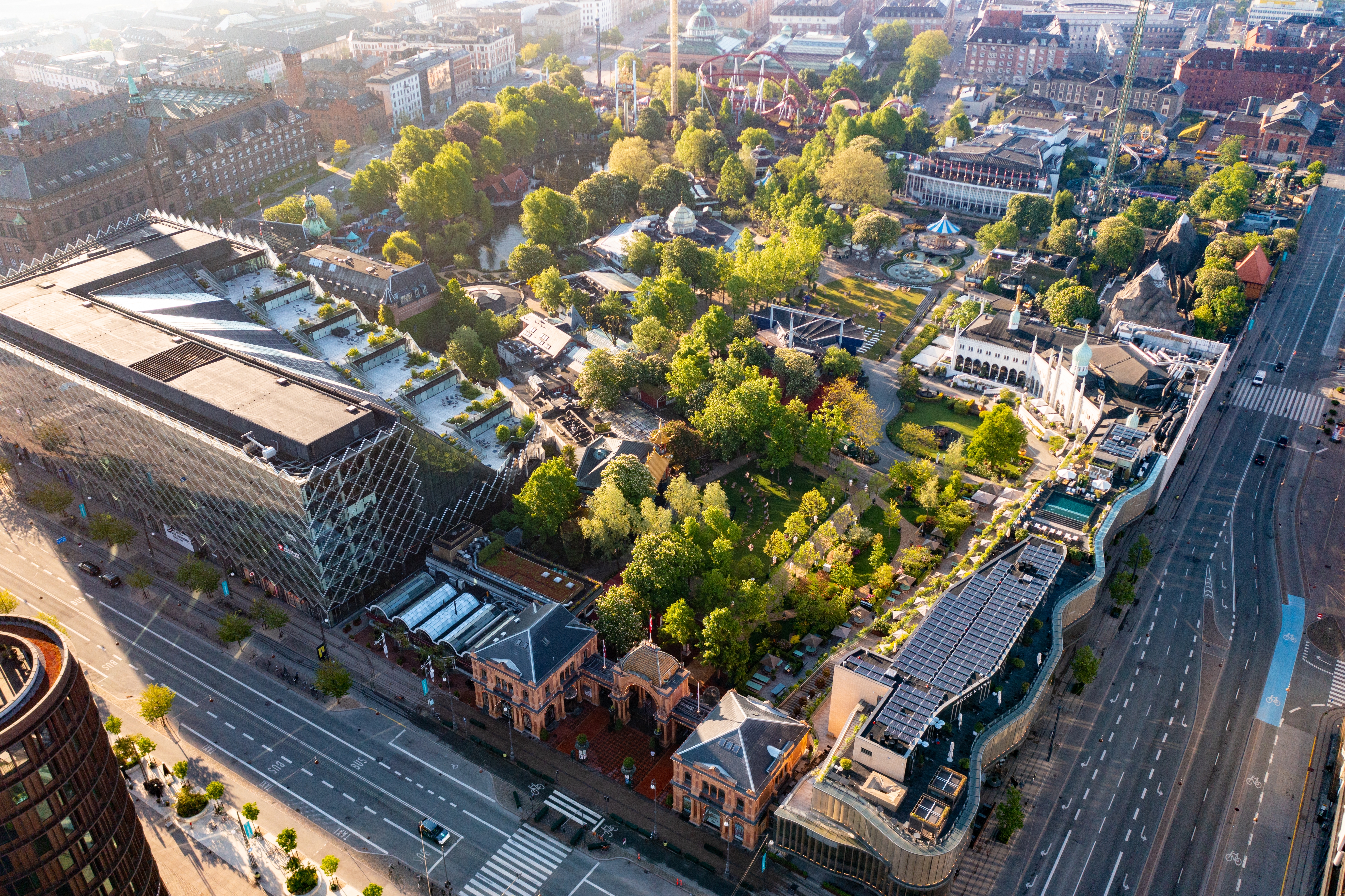- '''놀이기구:''' 1914년에 건설된 목조 롤러코스터인 룻셰바넨(Rutschebanen)을 비롯하여, 데몬(The Demon), 스타 플라이어(The Star Flyer), 버티고(Vertigo), 아퀼라(Aquila), 파타모르가나(Fatamorgana), 틱 탁(Tik Tak) 등 다양한 놀이기구가 있다. (놀이기구에 대한 자세한 내용은 === 놀이기구 === 하위 섹션 참조)