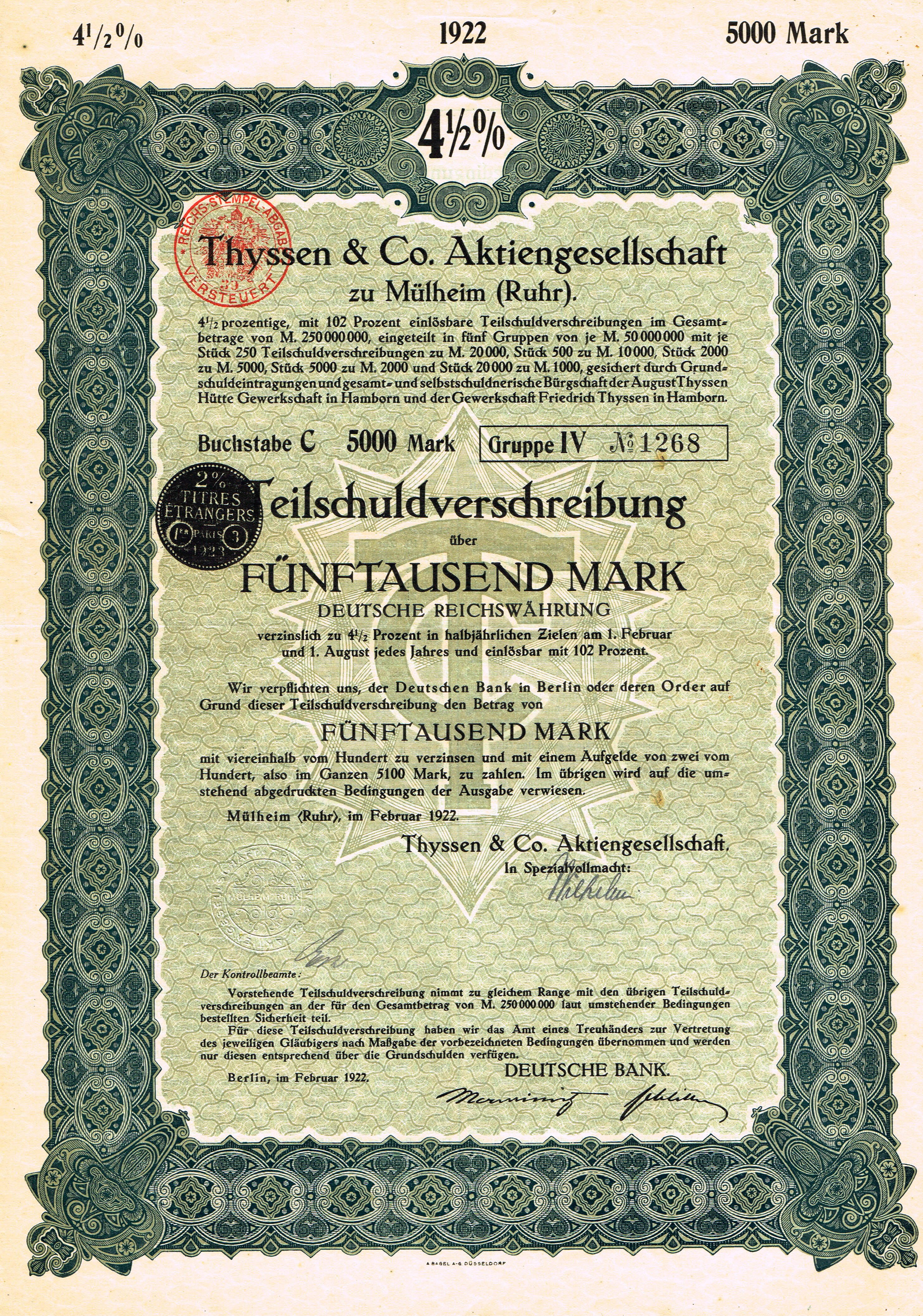 티센 역시 1930년대 중반 나치의 재무장 정책에 협력했으며, 전쟁 발발 후에는 부족한 노동력을 외국인 노동자, 강제 노역자, 전쟁 포로 등으로 충당했다. 당시 베어라이니게 슈탈베르케 AG의 이사회 의장이었던 프리츠 티센은 1939년 폴란드 침공 후 스위스로 망명했으나, 1940년 말 비시 프랑스에 의해 독일 제국으로 넘겨졌다.