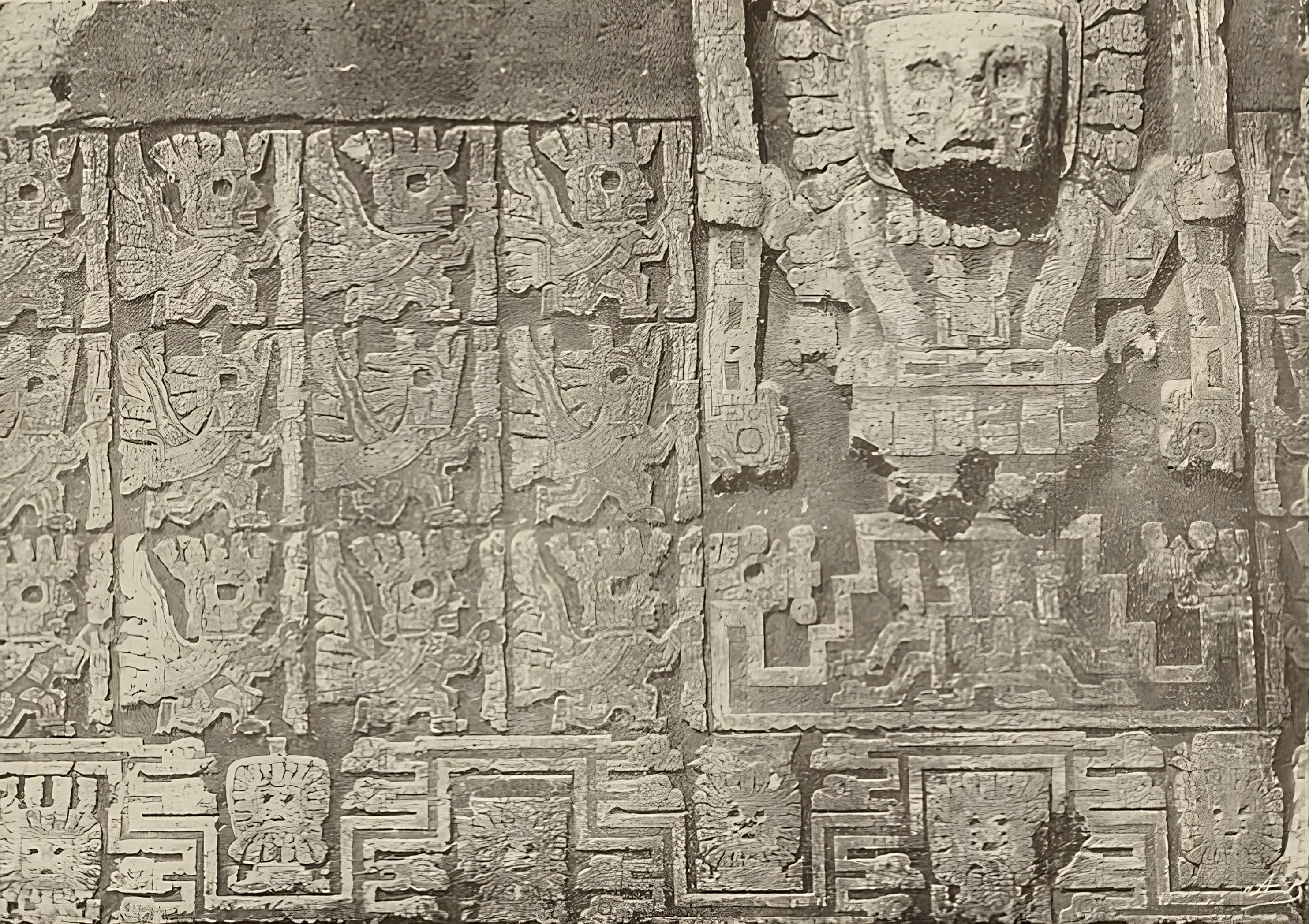 반 지하식 사각형 광장 | 벽에서 얼굴이 튀어나와 늘어선 장식이 되어 있으며, 가운데에 석상이 있다. |