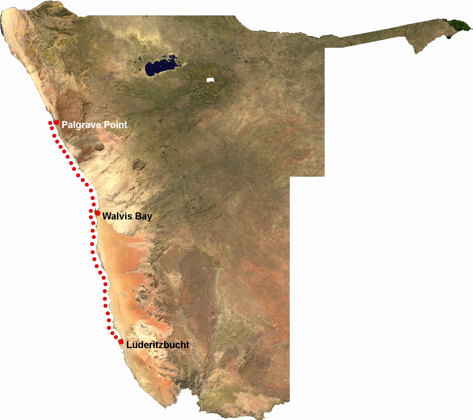 나미비아 해안의 대륙붕에서 발견된 ''티오마르가리타 나미비엔시스''는 플랑크톤 생산성이 높고 산소 농도가 낮은 환경에서 서식한다.[12] 300피트 깊이의 월비스 만 지역에서 가장 흔하게 발견되지만,[13] 팔그레이브 포인트에서 뤼데리츠부흐트까지 나미비아 해안을 따라 분포한다.[14]