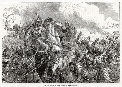 티푸 술탄은 1750년경 마이소르 왕국의 지배자 하이데르 알리의 아들로 태어났다. 그는 군사적 재능을 일찍이 보였으며, 아버지의 프랑스 군사 고문으로부터 훈련을 받았다. 1782년 아버지의 사망 이후 마이소르를 통치하며, 프랑스와 동맹을 맺고 영국 동인도 회사에 대항했다. 그는 군사 기술, 특히 로켓 기술을 발전시켰으며, 상업과 산업을 육성하고 새로운 화폐 제도를 도입하는 등 다양한 개혁을 추진했다. 그러나 영국과의 여러 차례 전쟁에서 패배했고, 1799년 제4차 마이소르 전쟁에서 스리랑가파트나를 지키다 전사했다. 티푸 술탄은 인도에서 논란의 대상이 되기도 하지만, 영국에 맞서 싸운 독립 투사로 칭송받기도 한다.