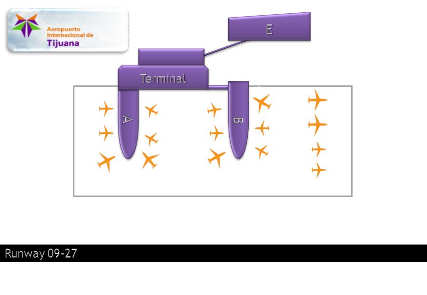 활주로 09/27은 미국-멕시코 국경에서 약 300m 남쪽으로 동서 방향으로 뻗어 있다. 활주로 접근은 동쪽에서(일반적으로) 또는 서쪽에서(산타 아나 바람 조건이 존재할 때) 이루어진다. 우세한 바람으로 인해 활주로 27은 티후아나의 주요 접근 패턴이다. 이 공항은 연간 최대 1,000만 명의 승객과 하루 360편의 항공편을 처리할 수 있다. 광동체 항공기인 보잉 787 및 747과 같은 항공기를 처리할 수 있다.