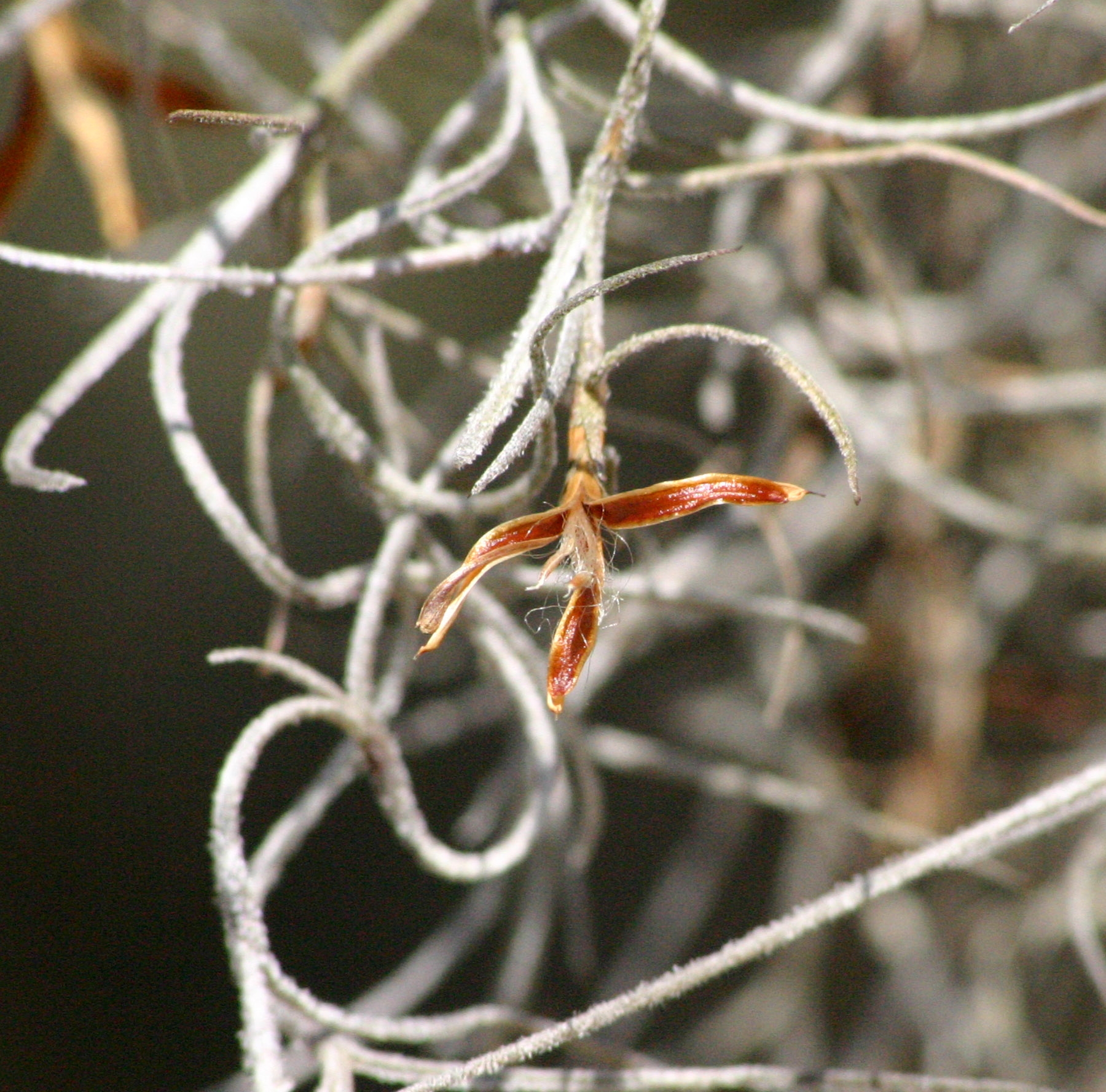 가는 줄기에 얇고 곱슬곱슬하며 비늘 모양 트리콤 ()이 빽빽하게 난 길이 2-6cm, 너비 1mm의 이파리로 구성되어 있으며, 서로 얽혀들어 아래로 6m까지[60] 늘어질 수 있다. 공기뿌리(:en:aerial root)가 없으며[60] 갈색, 초록색, 노란색, 회색 꽃들은 작고 눈에 잘 띄지 않는다. 씨앗으로도, 영양생식으로도 자손을 남길 수 있다.[60]