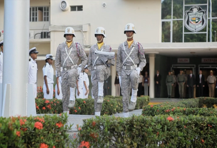 파나마 경찰 본부에서 열리는 국기 게양식