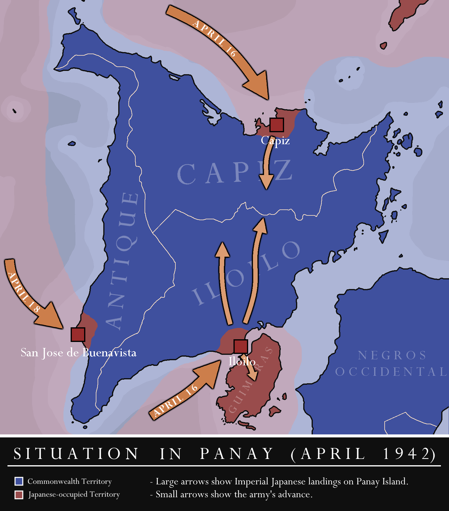 1942년 4월 16일, 제국 일본 육군 부대가 제2차 세계 대전 동안 파나이 섬과 나머지 비사야 제도를 확보하기 위해 산호세 데 부에나비스타, 카피스 시티(현재는 록사스 시티), 일로일로 시에 상륙했다. 마카리오 페랄타 주니어 대령의 지휘 아래 게릴라전 부대는 나중에 섬의 대부분을 해방시켰고, 결국 1944년 12월 20일 카피스 시티를 점령했다. 따라서 페랄타의 부대는 필리핀 일본 점령으로부터 카피스 주의 모든 지역을 해방시켰고, 연합군이 1945년 3월 18일 일로일로 시에 상륙하여 섬에 남아있는 일본군을 소탕하기 전에 해방을 달성했다.[27]