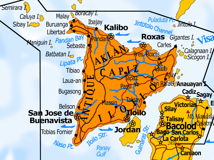 | 수역 | 쿠요 동쪽 해협 기마라스 해협 일로일로 해협 힌토톨로 해협 파나이만 시부얀해 술루해 비사야해 |