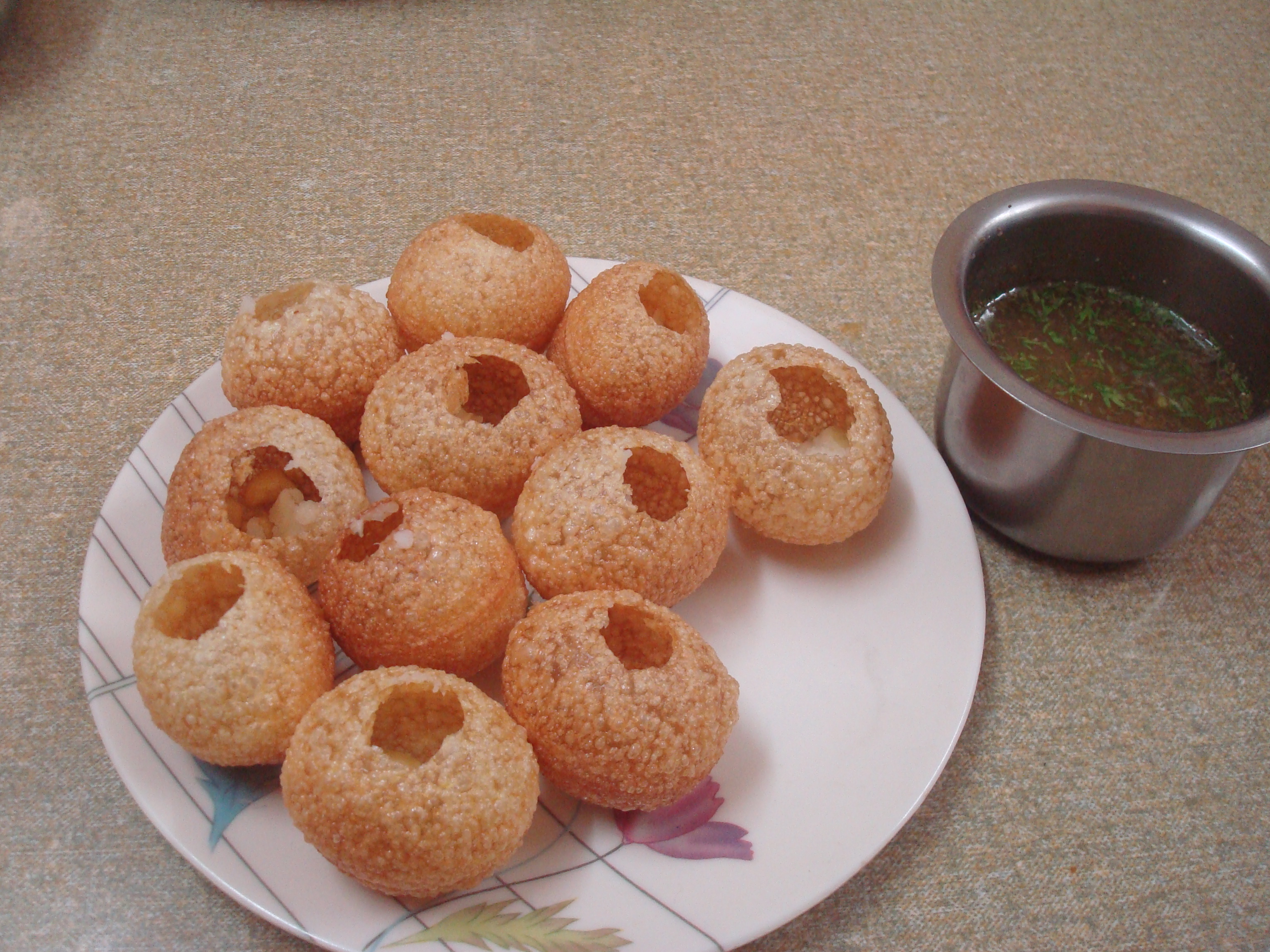 밀가루 반죽을 속이 빈 작은 한 입 크기 구형(골프공과 탁구공 중간 크기)으로 기름에 튀겨 둥글고 바삭하게 튀겨낸 것(푸리)에 윗부분만 구멍을 내어 만들어 놓고, 물과 타마린드, 칠리 파우더, Chaat masala영어(Chaat|label=차트영어용 시큼한 혼합 조미료) 등을 섞은 국물(파니)을 먹기 직전에 푸리 안에 넣어서 먹는다.