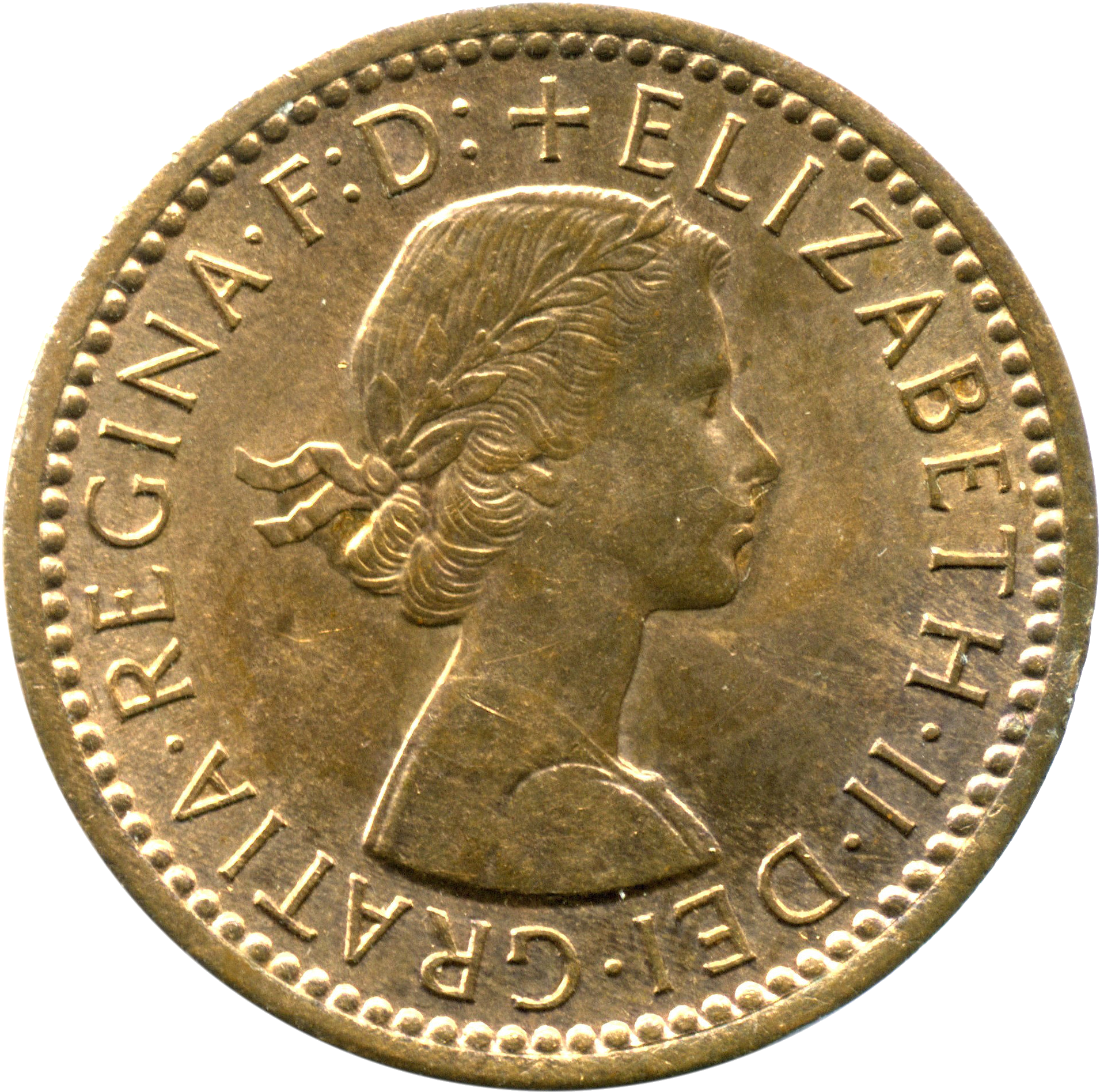 엘리자베스 2세 치세에서는 페니 주화와는 달리 파딩 주화에는, 그 초기 동안에는 1953년까지 ELIZABETH II DEI GRA BRITT OMN REGINA F D (신의 가호 아래 엘리자베스 2세, 브리타니아 전역의 여왕, 신앙의 옹호자)라고, 그 이후에는 ELIZABETH II DEI GRATIA REGINA F D (신의 가호 아래 엘리자베스 2세, 여왕, 신앙의 옹호자)라고 쓰여 있었다.