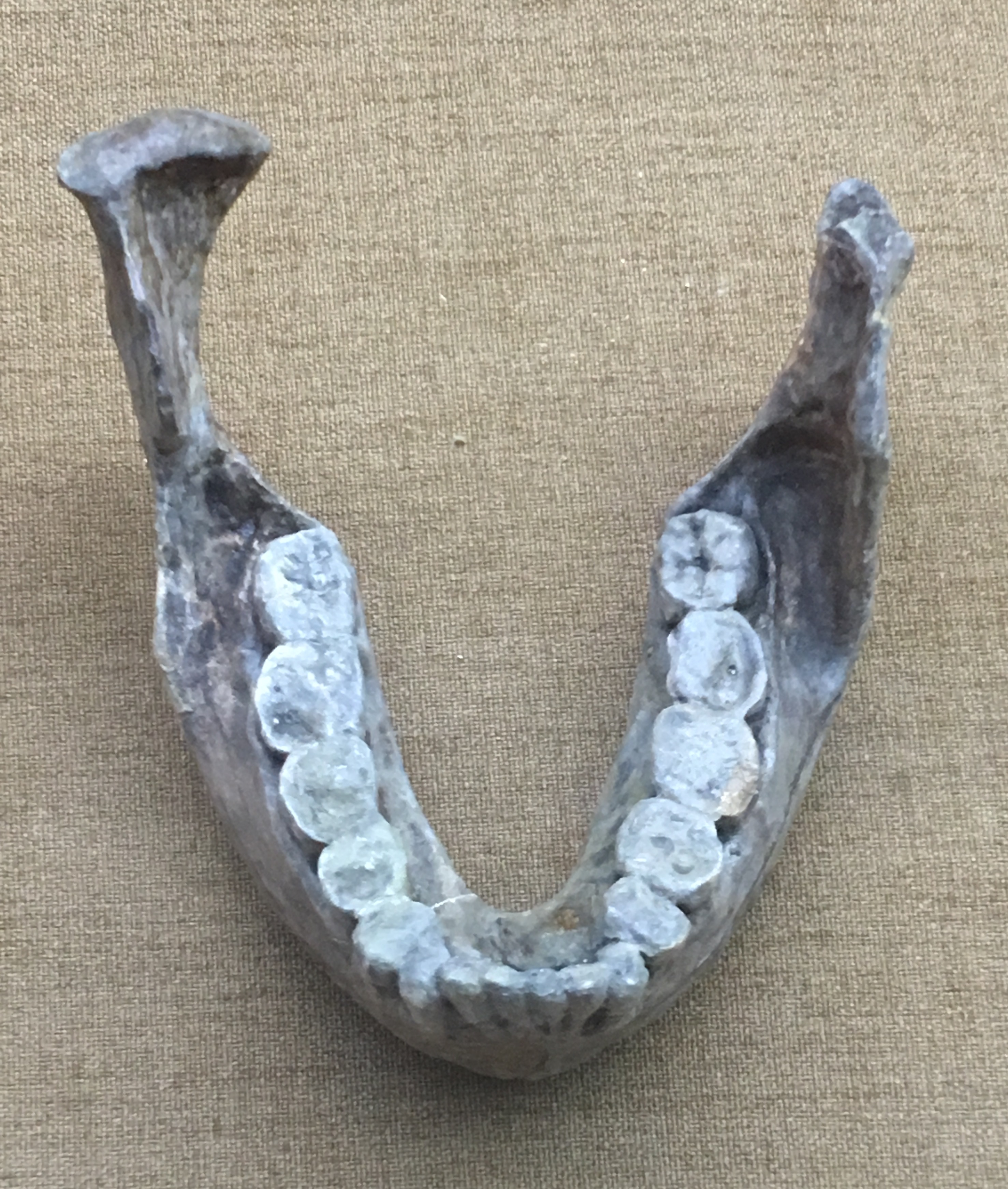 치아는 크고 평평한 어금니를 가졌으며, 후견치 거대증(앞니는 작고 어금니는 큰 특징)을 보인다.[3] KNM WT 17000의 오른쪽 세 번째 소구치는 ''P. 로부스투스''의 변동 범위를 넘어서며 ''P. 보이세이''의 상한선에 가깝다.[3] KNM-WT 16005 하악골 역시 ''P. 보이세이''의 페닌 하악골과 유사하게 작은 절치와 견치, 큰 볼 쪽 치아를 보여준다.[3] KNM-WT 16005의 보존된 치아 크기는 세 번째 소구치 10.7mm × 13.8mm, 네 번째 소구치 12mm × 15mm, 첫 번째 어금니 15.7mm × 14.3mm, 두 번째 어금니 17mm × 16.7mm이다.[3]