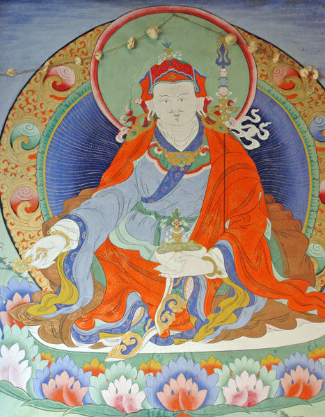 구루 파드마삼바바, 명상 동굴의 창시자. 파로 다리 벽화.