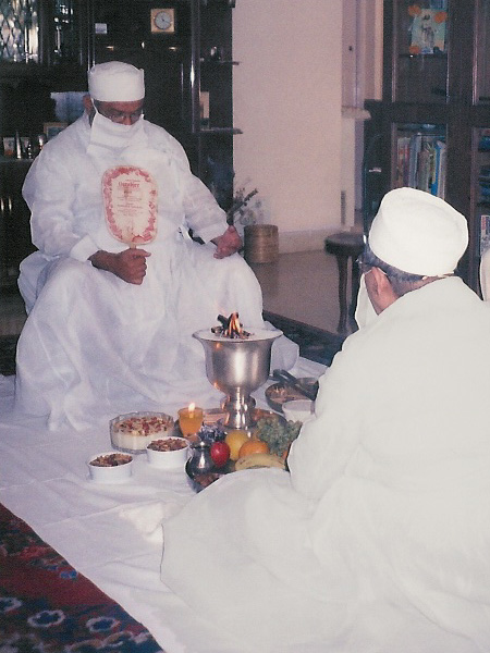 - 나브조테(Navjote): 조로아스터교 신자는 유아 세례를 받지 않고, 나브조테 의식을 통해 신앙에 입문한다. 이 의식은 아이들이 사제와 함께 필수 기도를 암송할 수 있을 만큼 충분히 나이가 들었을 때, 이상적으로는 사춘기 이전에 거행된다. 나브조테는 성인에게는 수행할 수 없지만, 이란 조로아스터교의 세드레-푸슈티는 개종을 원하는 사람이라면 어떤 나이에도 할 수 있다.[50] 나브조테는 영적인 정화 기도로 시작하여, 아이에게 신성한 셔츠와 끈인 수드레와 쿠스티를 수여한다.