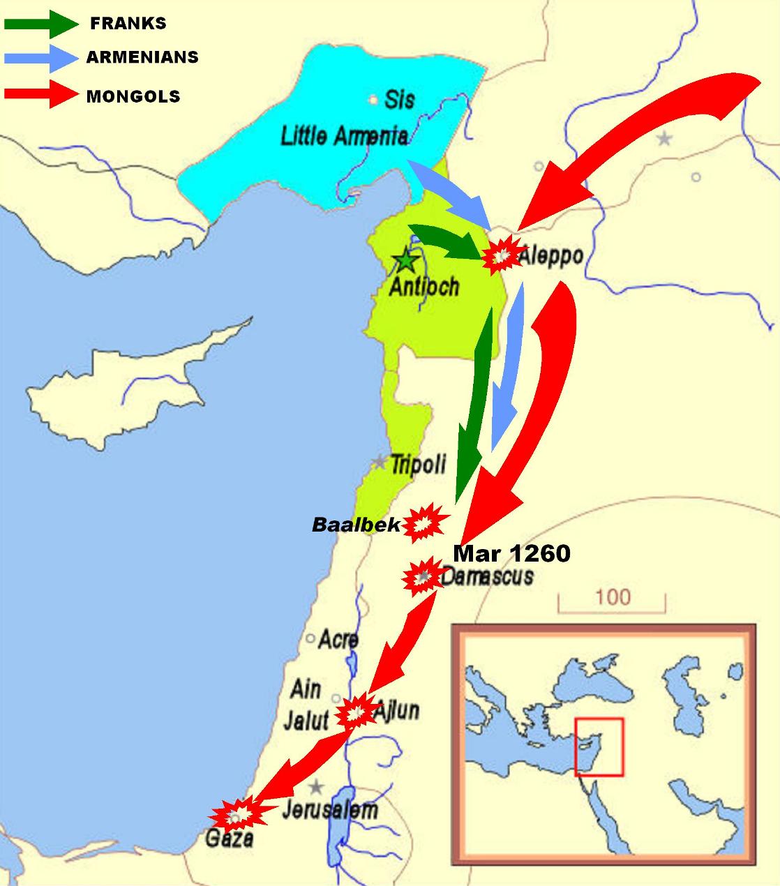 이후 술탄 바이바르스 시대 동안, 킬리키아 아르메니아와 안티오크 공국은 몽골과의 동맹에 대한 막대한 대가를 치렀다.[78] 아인잘루트 전투 이후 맘루크는 시리아에 대한 몽골의 계속된 공격을 격퇴하며, 이슬람 세계는 십자군과 몽골의 공격 속에서도 살아남았다.[79]