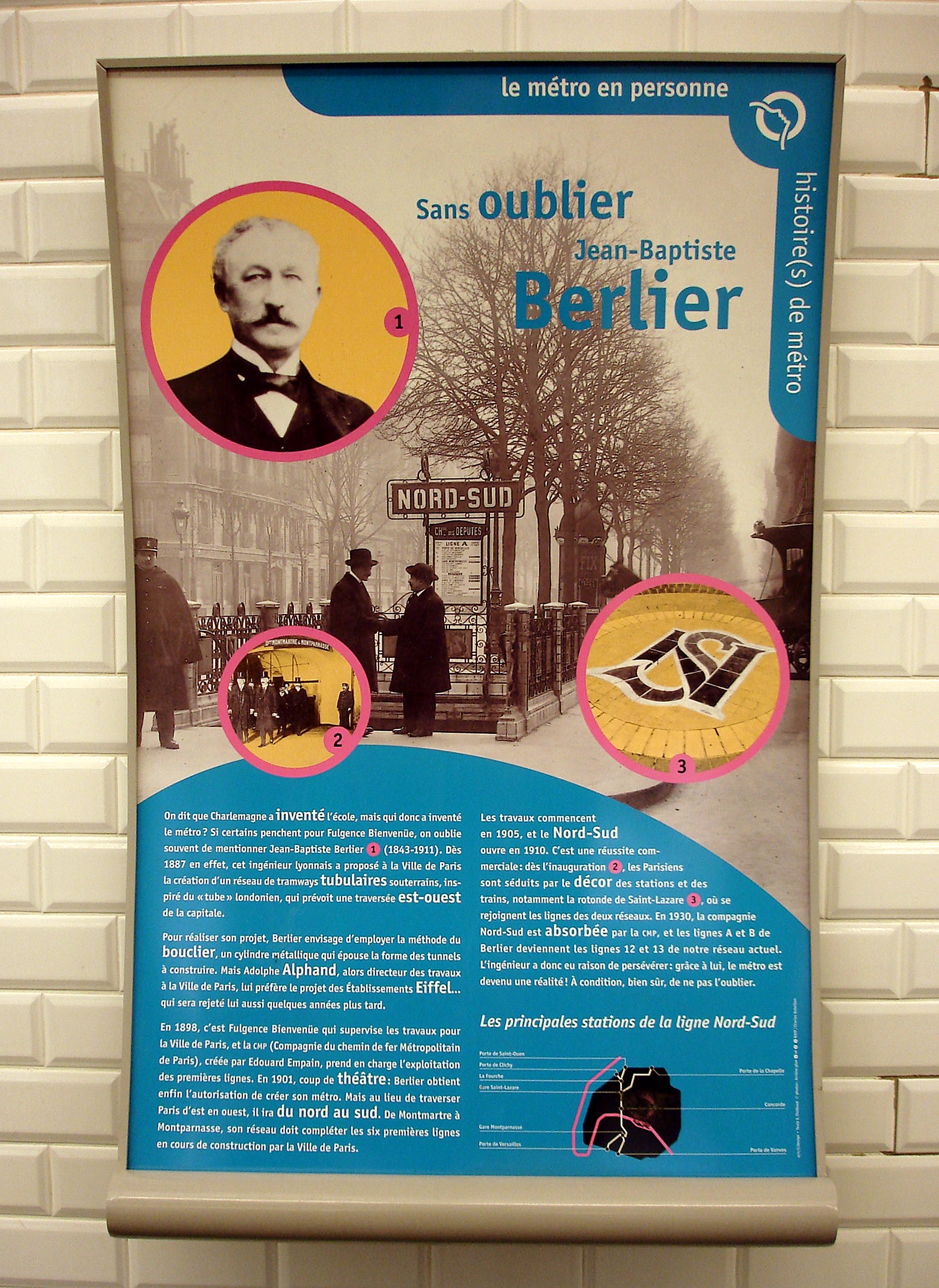 장-바티스트 베를리에는 파리 시에 북쪽의 몽마르트르와 생-라자르 역 지역을 남쪽의 몽파르나스와 보지라르와 연결하는 새로운 노선을 건설할 것을 제안했다. 이 노선은 기존 4호선 서쪽에 도시의 두 번째 남북 교통 축을 형성할 것이었다. 베를리에가 설계한 깊고 평행한 철제 터널 두 개는 런던 지하철 시스템을 모델로 하여, 건물 아래를 지나지 않고 지하 하수도와 간섭 없이 가능한 가장 직선의 노선을 건설할 수 있게 해주었다.[2]