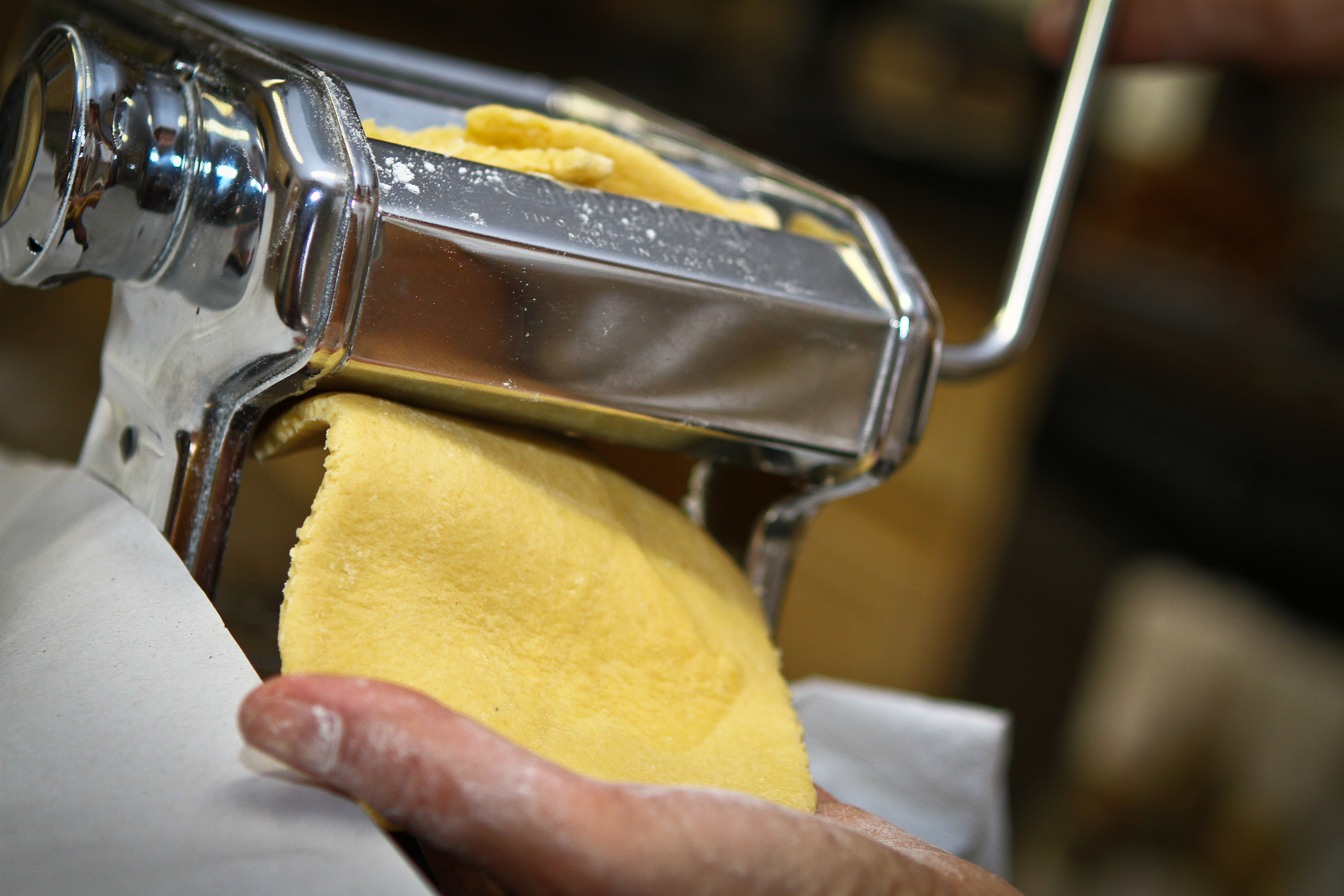 주방용 파스타 기계(파스타 메이커라고도 함)는 많은 양의 신선한 파스타를 만드는 요리사들에게 인기가 있습니다. 요리사는 손으로 파스타 반죽 시트를 기계에 넣고, 손잡이를 돌려 파스타를 점진적으로 얇게 밀어냅니다. 파스타 기계를 마지막으로 통과할 때, 파스타는 기계의 '빗'을 통해 나오면서 파스타의 모양이 만들어질 수 있다.