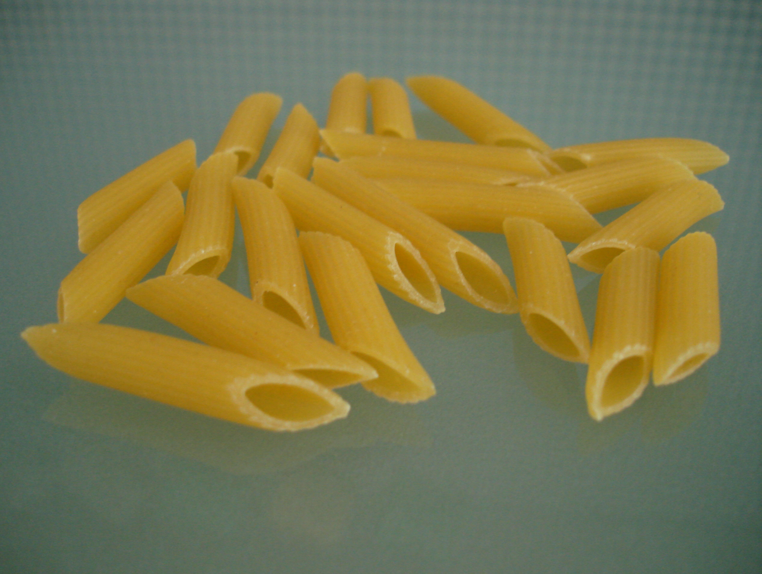 파스타 반죽 재료에는 세몰리나 밀가루, 계란, 소금, 물이 포함된다. 밀가루를 평평한 표면에 쌓은 다음, 밀가루 더미에 구멍을 만듭니다. 그런 다음 계란을 구멍에 붓고 포크를 사용하여 계란과 밀가루를 섞는다.[42] 필요한 종류에 따라 파스타 시트의 모양을 다양하게 만들 수 있다. 가장 인기 있는 종류에는 펜네, 스파게티, 그리고 마카로니가 있다.[43]