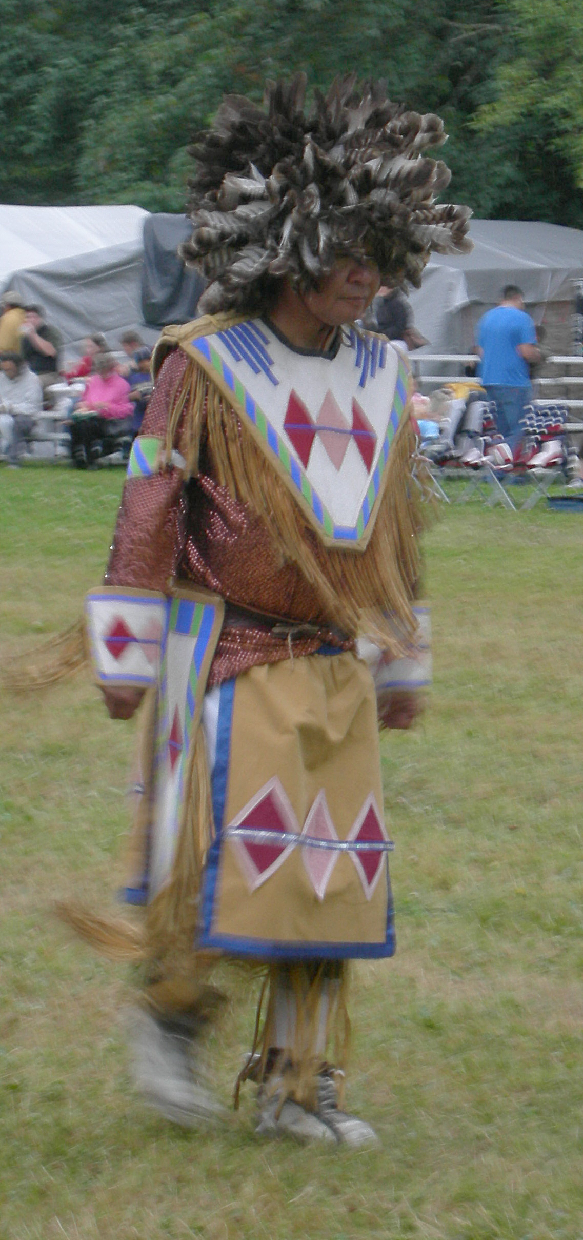 - 북부 전통 스타일(북부에서는 단순히 "남성 전통 스타일"): 독수리 깃털로 만든 버슬 하나, 보통 리본 셔츠, 뼈 헤어 파이프 목걸이, 가슴판 등 전통 의상을 특징으로 하는 춤이다. 움직임은 전투 전에 정찰하는 전사나 파우와우가 의식으로 처음 추어졌을 때 거슬러 올라가는 다른 이야기 전통을 바탕으로 한다. 댄서들은 춤봉과 보통 독수리 날개로 만든 부채를 든다.[13]