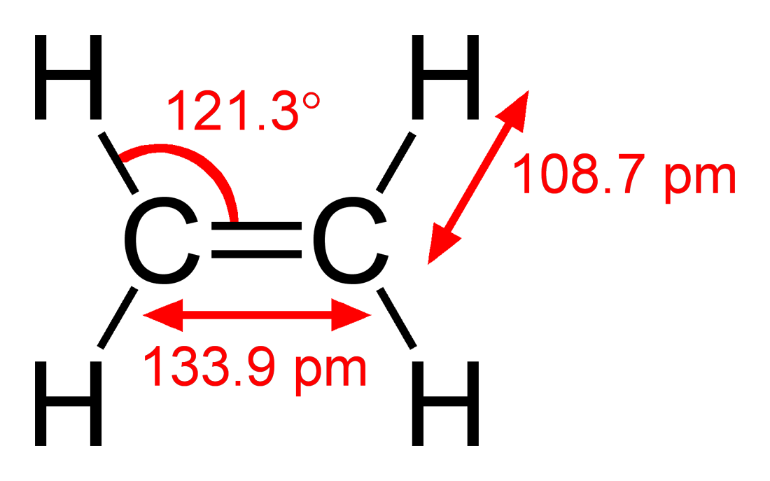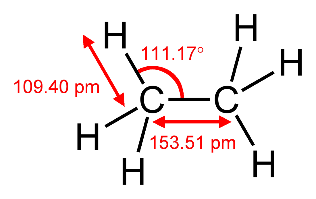 에탄의 탄소-탄소 결합 길이는 약 154pm이고,[2][3] 에틸렌은 134pm, 아세틸렌은 120pm이다. 결합이 많을수록 전체 결합 길이는 짧아지고 결합은 강해진다.
