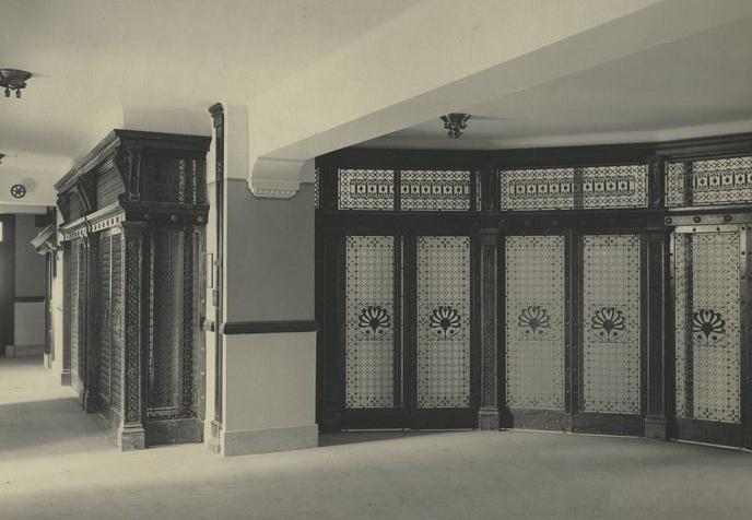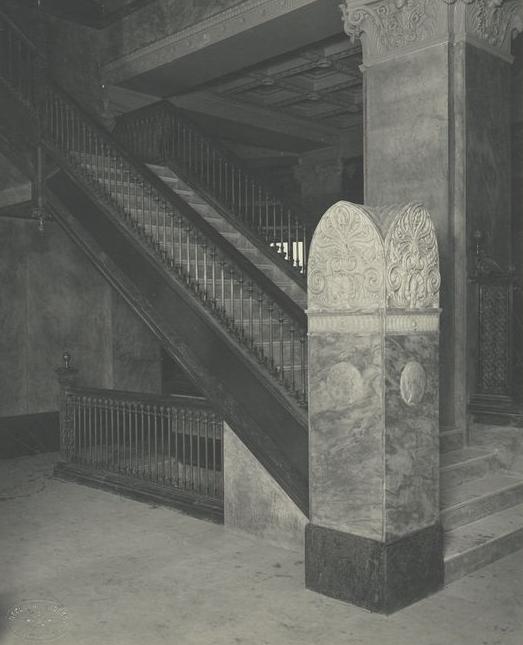 건물의 북쪽에는 2층 위에 두 개의 계단이 있으며, 각 층에는 수많은 작은 사무실과 모자이크 바닥 타일이 있는 북쪽에 반원형 엘리베이터 로비가 있다.[5][47]