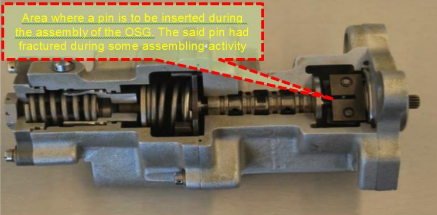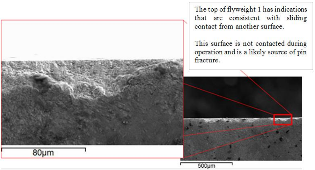 파손된 블레이드에서 나온 금속 조각은 과속 라인에 축적되어 플런저 회전을 굳게 만들었고, 플라이웨이트에 더 많은 스트레스를 가했다.[6] 과도한 부하로 인해 OSG 밸브가 부분적으로 열렸다가 다시 닫히는 현상이 반복되면서 프로펠러 속도가 급격하게 변동했다.[6]