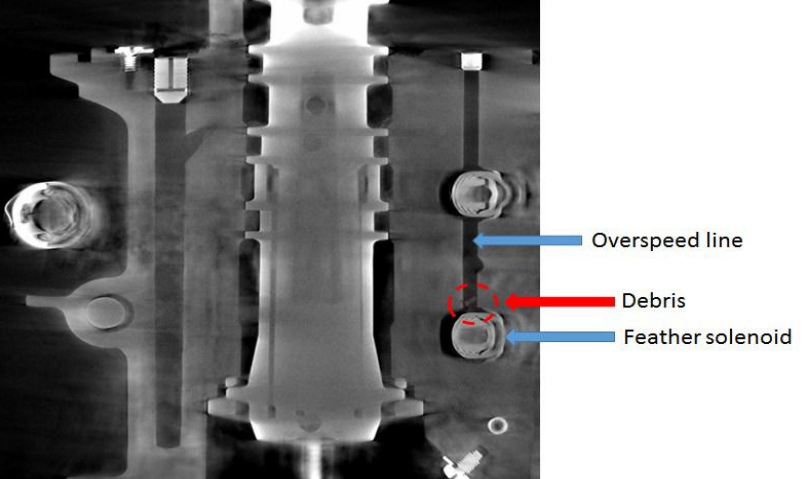 과속 라인 내부 파편은 고장난 엔진에서 생성된 것이 아니라, 프로펠러 LRU가 기어박스에 설치될 때 유입되었을 가능성이 높다.[6]