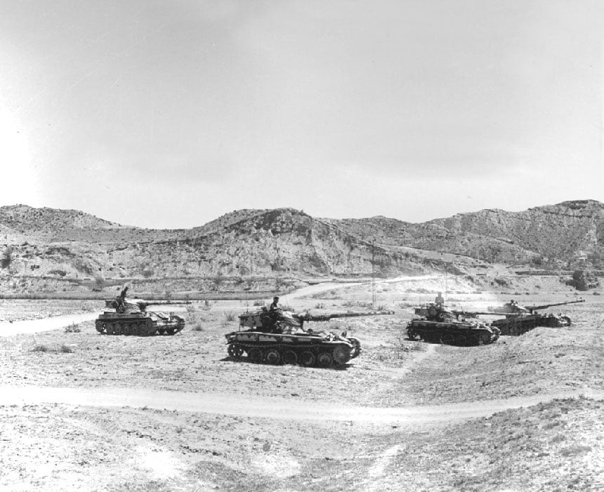 1965년 분쟁 당시, 파키스탄의 기계화 부대는 M4 셔먼, M24 채피, M36 잭슨, M47 및 M48 패튼 전차를 포함하여 미국에서 수입되었으며, 90mm포를 장착했다.[55] 반대로, 인도군의 장갑차는 M4 셔먼과 영국 센추리온 전차와 같은 구식 기술을 가지고 있었으며, 프랑스제 CN-75 포를 장착했다.[56]
