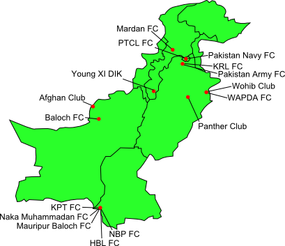 현재 파키스탄 프리미어리그(PPL)에는 16개의 클럽이 있다. 시즌은 11월부터 2월까지 겨울철에 진행되며, 각 클럽은 다른 클럽과 두 번씩 경기를 치른다. 한 번은 홈 경기장에서, 한 번은 상대 팀의 경기장에서 경기를 치르며, 각 클럽은 총 30경기를, 한 시즌에는 총 240경기를 치르게 된다. 각 팀은 승리 시 3점, 무승부 시 1점을 얻는다. 팀 순위는 총점, 그 다음 골득실차, 마지막으로 득점 순으로 결정된다. 각 시즌이 끝나면 가장 많은 점수를 얻은 클럽이 PPL 챔피언으로 선정된다. 시즌이 끝나면, 최하위 두 팀은 PFF 리그로 직접 강등되고, PFF 리그의 상위 두 팀은 PPL로 승격된다.4. 2. 아시아 대회 참가 자격
