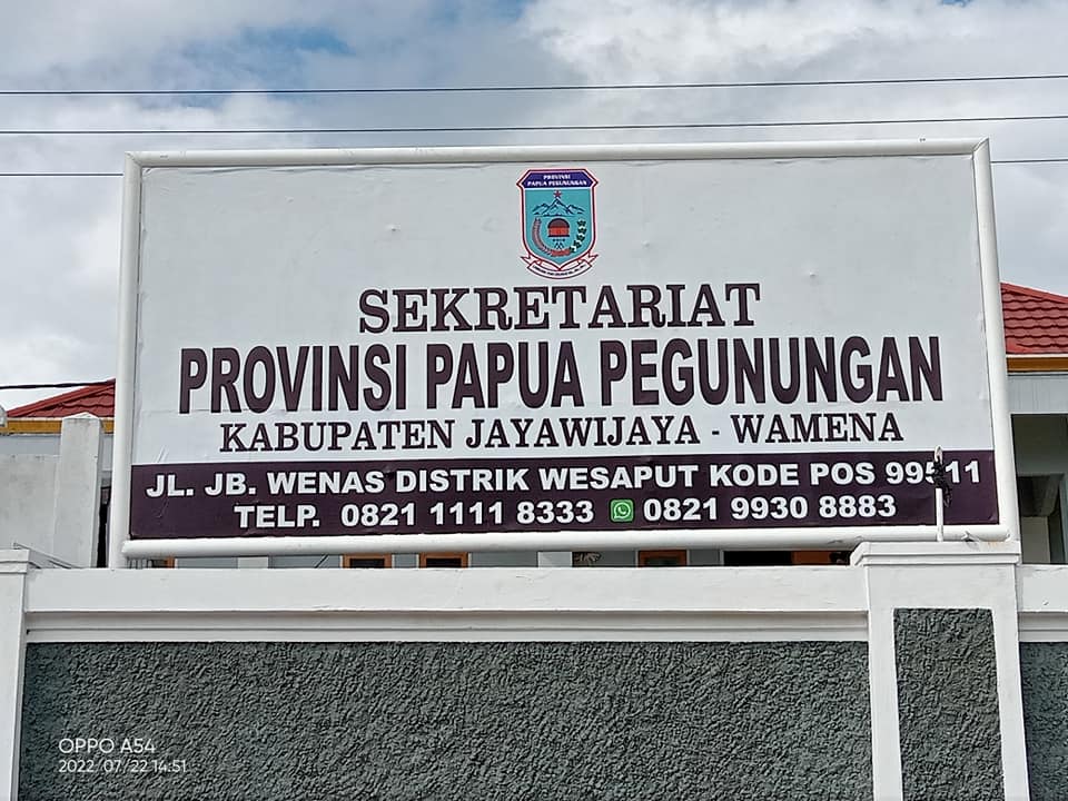 2022년 법률 제16호가 발효된 후, 새로운 주의 리젠트는 내무부와 협력하여 ''Kelompok Kerja'' (Pokja) III 태스크 포스를 통해 신 자치 지역을 지원하고, 주지사 사무실 및 임시 서비스 위치, 지방 선거 이전의 잠정 예산, 국가 공무원(ASN), 각 리젠시, 모주 및 중앙 정부로부터의 보조금을 마련했다. 포크자(Pokja)는 또한 미래 주 정부 사무소 센터의 잠재적 위치를 검토했으며, 물리아마 구, 와메나, 메가푸라 또는 후비키악 사이에서 대안을 제시했다. 한편, 임시 주지사 사무실은 자야위자야 리젠시의 교육청에 위치해 있지만, 와메나 몰과 같은 다른 권고사항도 있었다. 임시 주지사 사무실 표지판은 2022년 9월 6일에 설치되었지만, 다음 날 자야위자야 리젠시 학생 협회(HMKJ)의 회원 9명에 의해 훼손되었고, 결국 경찰에 체포되었다.