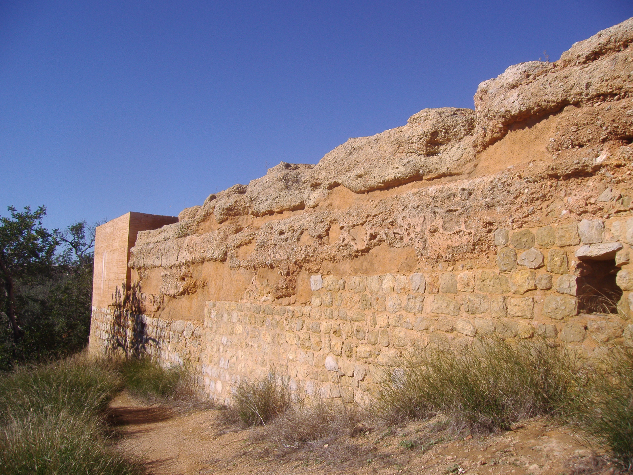 섬네일 서쪽 끝 부근에 있는 가욕관의 문. 주변 성벽은 부분적으로 판축을 사용하여 튼튼하게 만들어졌다]]