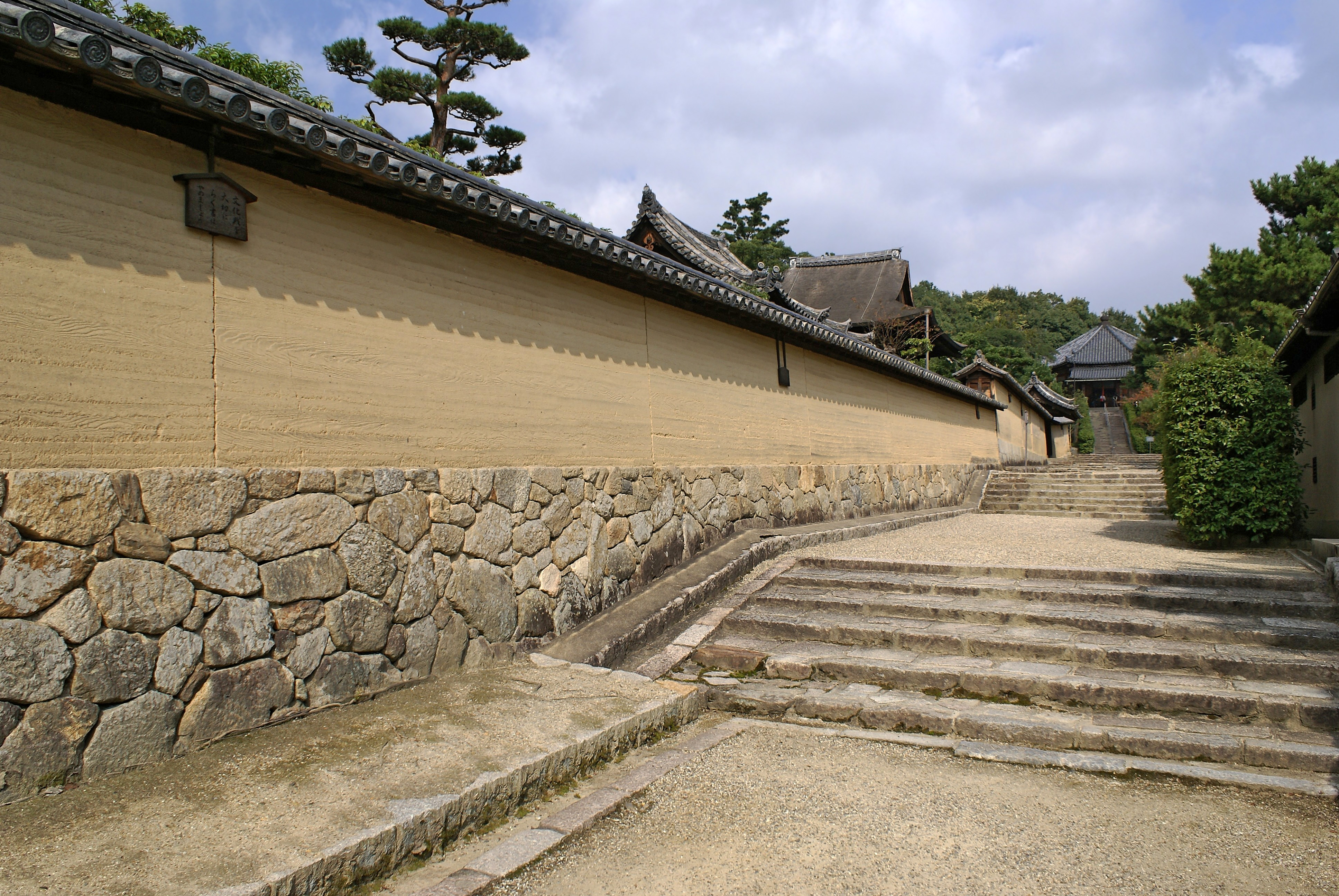 호류지의 흙담은 판축으로 만들어졌으며, 표면에는 수평 방향의 선이 있는데, 이는 판축을 만들 때 사용한 틀의 흔적이다.[10]