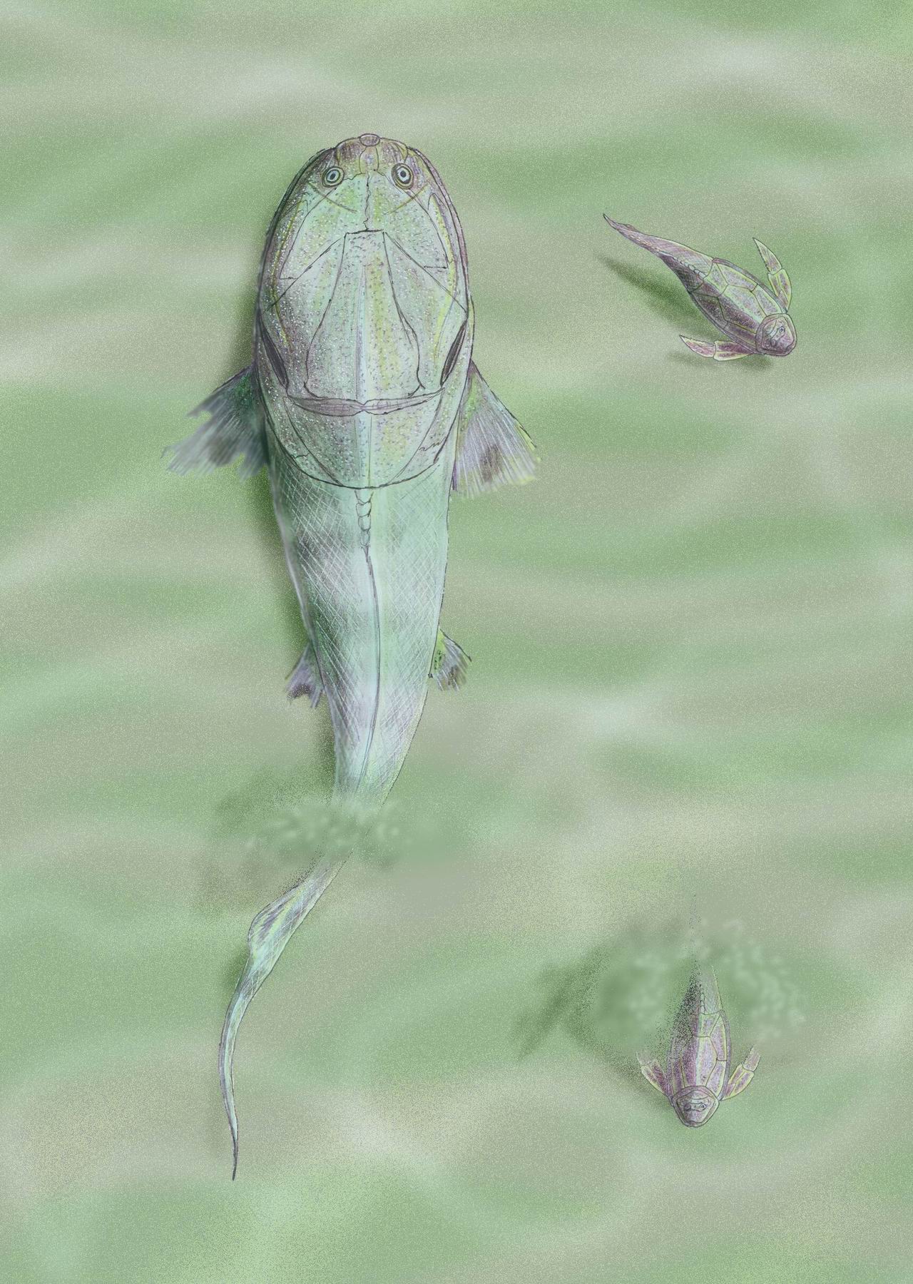 Arthrodiriformes (절경목) | 판피류 중 가장 다양하고 잘 연구된 그룹. 대부분 유영 생활을 하는 포식자. 칼날 같은 턱뼈를 가진 Dunkleosteus, Coccosteus 등이 포함됨.[29][40] Dunkleosteus는 몸길이가 최소 4m에 달했을 것으로 추정됨.[41] | 데본기, 전 세계적 분포 |