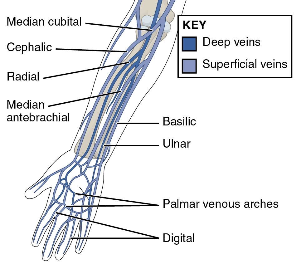 팔뚝의 주요 혈관은 상완동맥에서 갈라져 나온 요골동맥과 척골동맥이다.