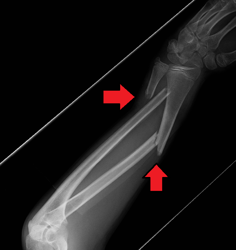 팔의 골절은 척골만 포함하는지(척골 골절), 요골만 포함하는지(요골 골절), 아니면 요골과 척골 둘 다 포함하는지(요척골 골절)에 따라 분류할 수 있다.