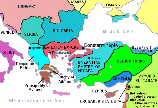제4차 십자군 이후 동로마 제국은 니케아 제국, 에페이로스 전제공국, 트라페주스 제국과 같은 후계 국가들로 분열되었다. 제국의 나머지 영토는 프랑크족과 라틴족이 차지했으며, 이들은 명목상 콘스탄티노폴리스의 라틴 황제의 지배를 받았다. 이러한 제국의 분열은 불가리아, 세르비아, 그리고 아나톨리아 반도의 튀르크멘 토후국들에게 세력을 확장할 기회를 주었다.