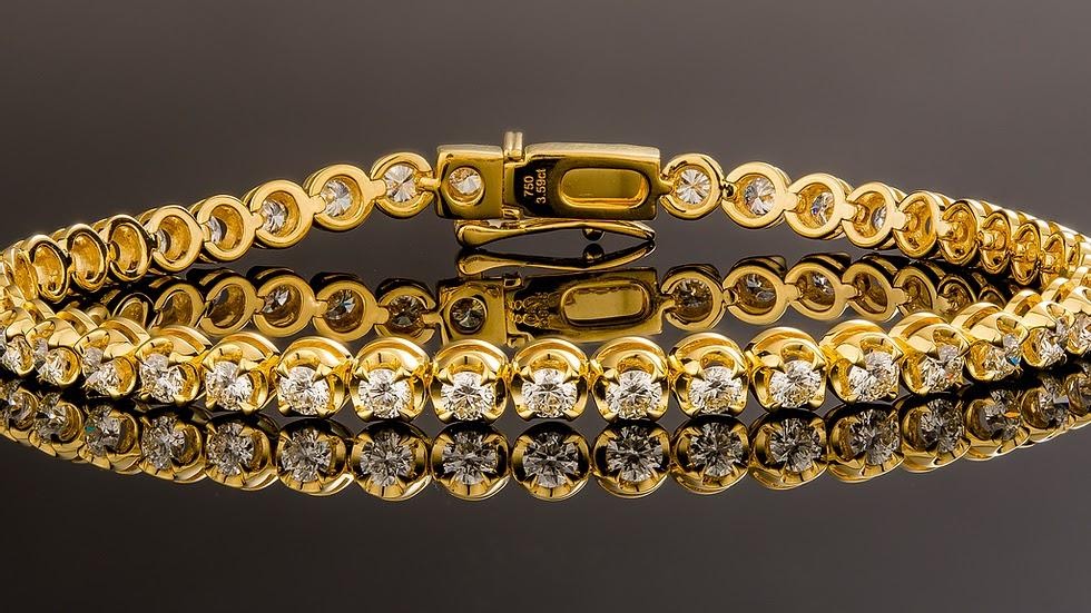 - '''테니스 팔찌''': 1978년 US 오픈 경기 중 테니스 선수 크리스 에버트가 착용한 다이아몬드 라인 팔찌가 손목에서 떨어져 코트 표면에 떨어지면서 "테니스 팔찌"라는 이름이 붙었다.[5][6] 보통 4개의 발톱 세팅에 둥근 다이아몬드가 세팅되어 있으며, 보석상을 통해 링크를 제거하여 맞춤 조절할 수 있다.