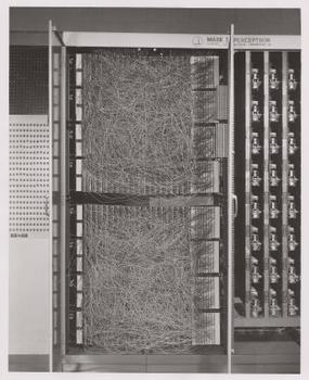 1957년, 프랭크 로젠블랫은 코넬 항공 연구소에서 IBM 704를 사용하여 퍼셉트론을 시뮬레이션했다.[4][5] 이후, 그는 미국 해군 연구청 정보 시스템 부서와 로마 공군 개발 센터로부터 자금을 지원받아 자체 제작 컴퓨터인 마크 1 퍼셉트론을 제작했다. 1960년 6월 23일에 처음으로 공개 시연된 이 기계는 "1963년부터 1966년까지 4년 동안 이루어진 비밀 프로젝트인 미국 국가 사진 해석 센터(NPIC)의 노력의 일환으로, 사진 해석가에게 유용한 도구로 이 알고리즘을 개발하기 위한 것이었다".[6]
