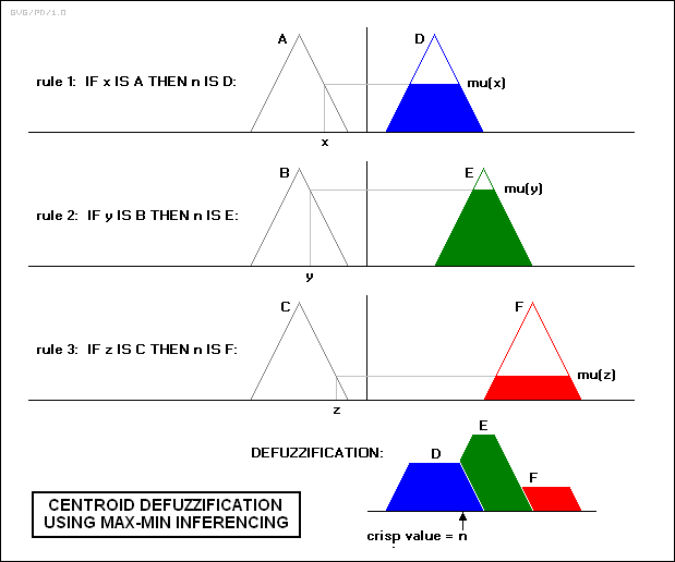 입력 변수를 소속 함수 및 진리값으로 사상하면 마이크로컨트롤러는 다음과 같은 형식의 일련의 "규칙"을 기반으로 취해야 할 조치에 대한 의사 결정을 내린다.