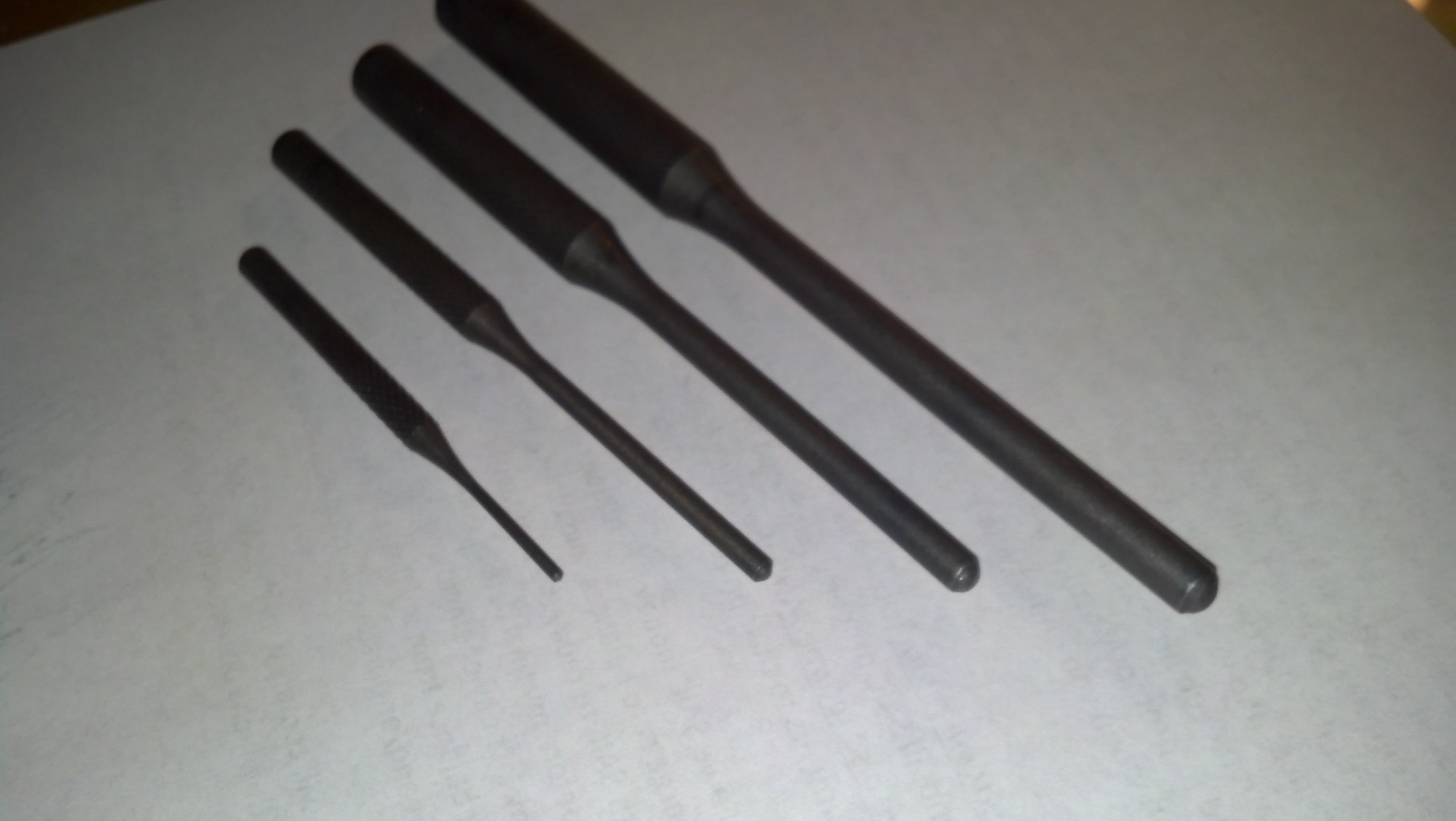 핀을 제거하려면 먼저 스타터 펀치를 사용하여 핀을 느슨하게 한 다음, 핀 펀치를 사용하여 마무리한다.