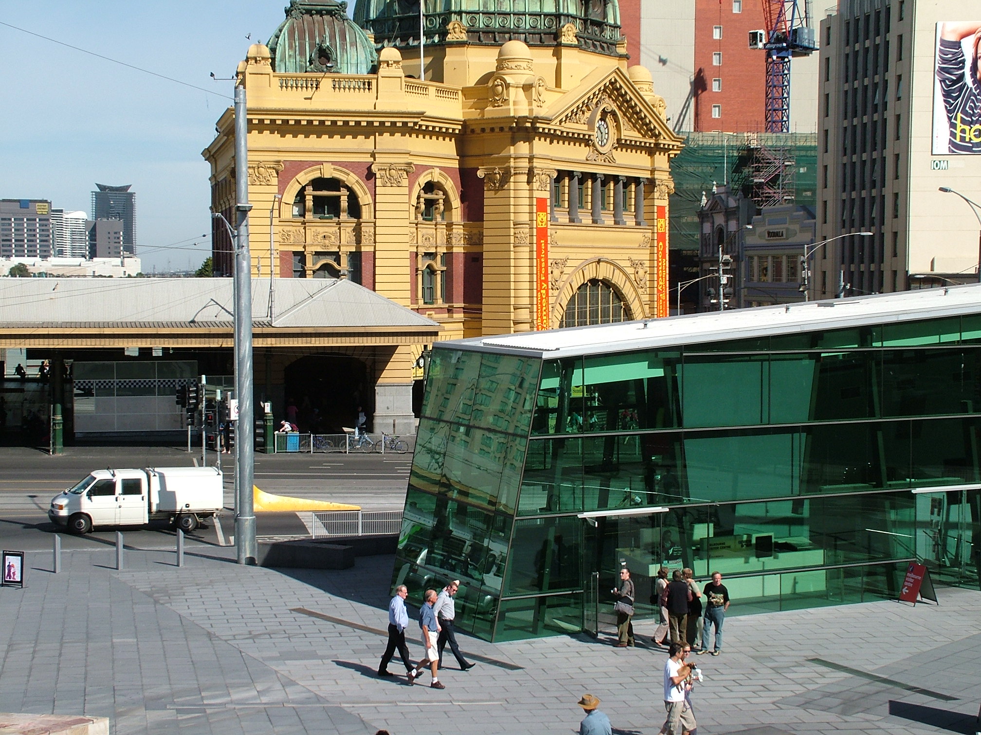 멜버른 관광 안내 센터는 지하에 위치해 있었으며, 플린더스 스트리트 역과 세인트 폴 대성당 바로 맞은편의 주요 모서리 샤드에 입구가 있었고, 반대편 샤드에 출구가 있었다.[1] 스완스턴 스트리트에 있는 19세기 초 시청 행정 건물에 있던 시설을 대체하기 위해 건설되었다.[1] 2018년 12월, 스완스턴 스트리트 아래에 건설될 급행 철도 역 입구를 확보하기 위해 철거되었고, 시청으로 돌아갔다.[1]