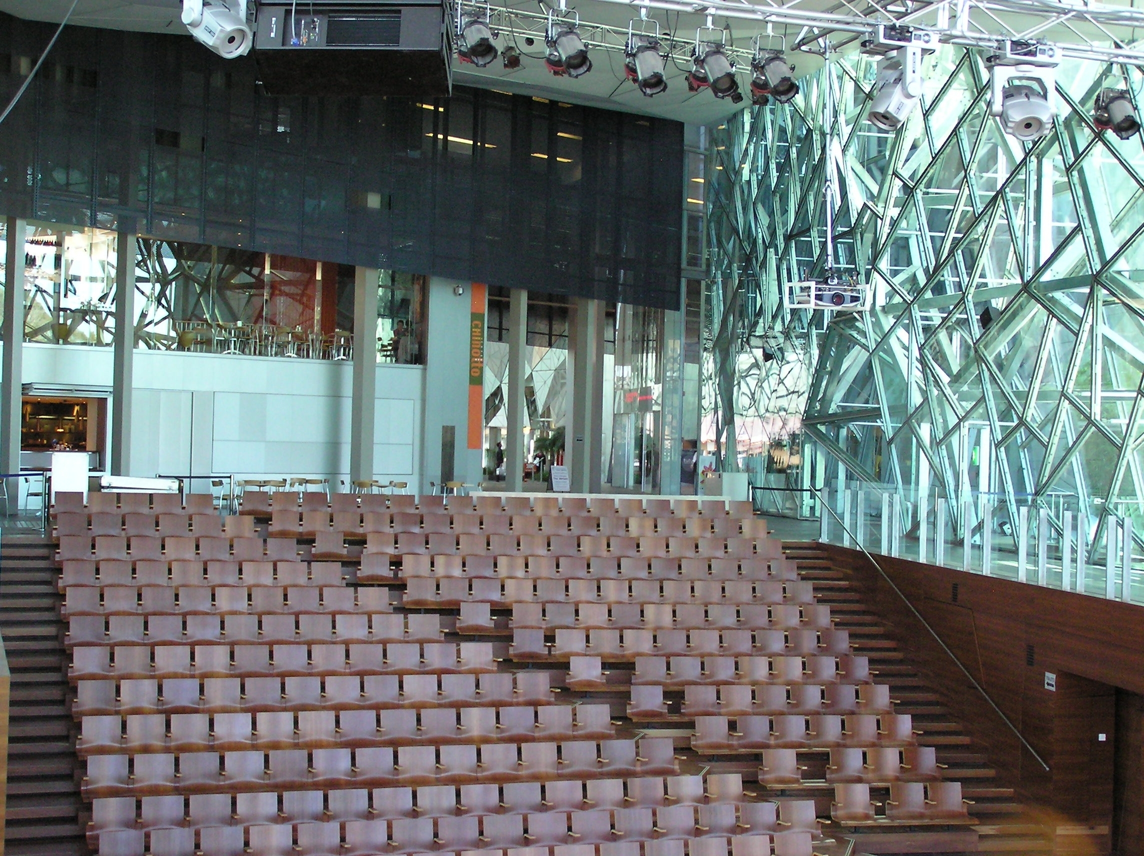 광장 디자인의 핵심 요소는 크고 고정된 공공 방송용 스크린으로, AFL 그랜드 파이널(AFL Grand Final) 및 호주 오픈(Australian Open)과 같은 주요 스포츠 행사를 방송하는 데 사용되었다.[27] 현재 호주에서 가장 큰 방송 스크린이다.[27]3. 3. 건물