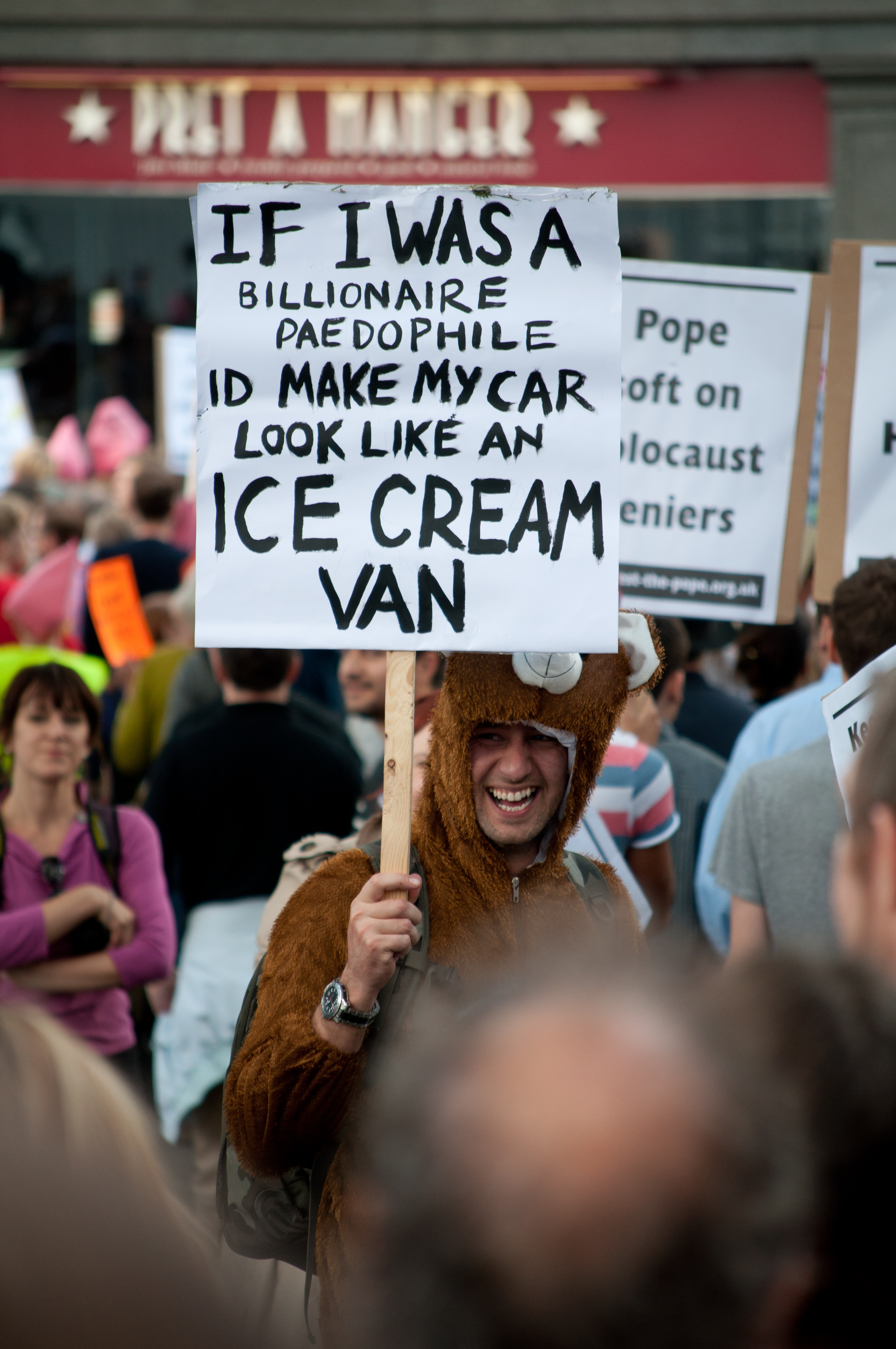 2010년 4월 로마 교황베네딕토 16세의 몰타 방문 시 가톨릭교회의 성 학대 사건에 항의하는 시위대가 교황 환영 간판에 페도베어를 낙서하기도 했다.[30]