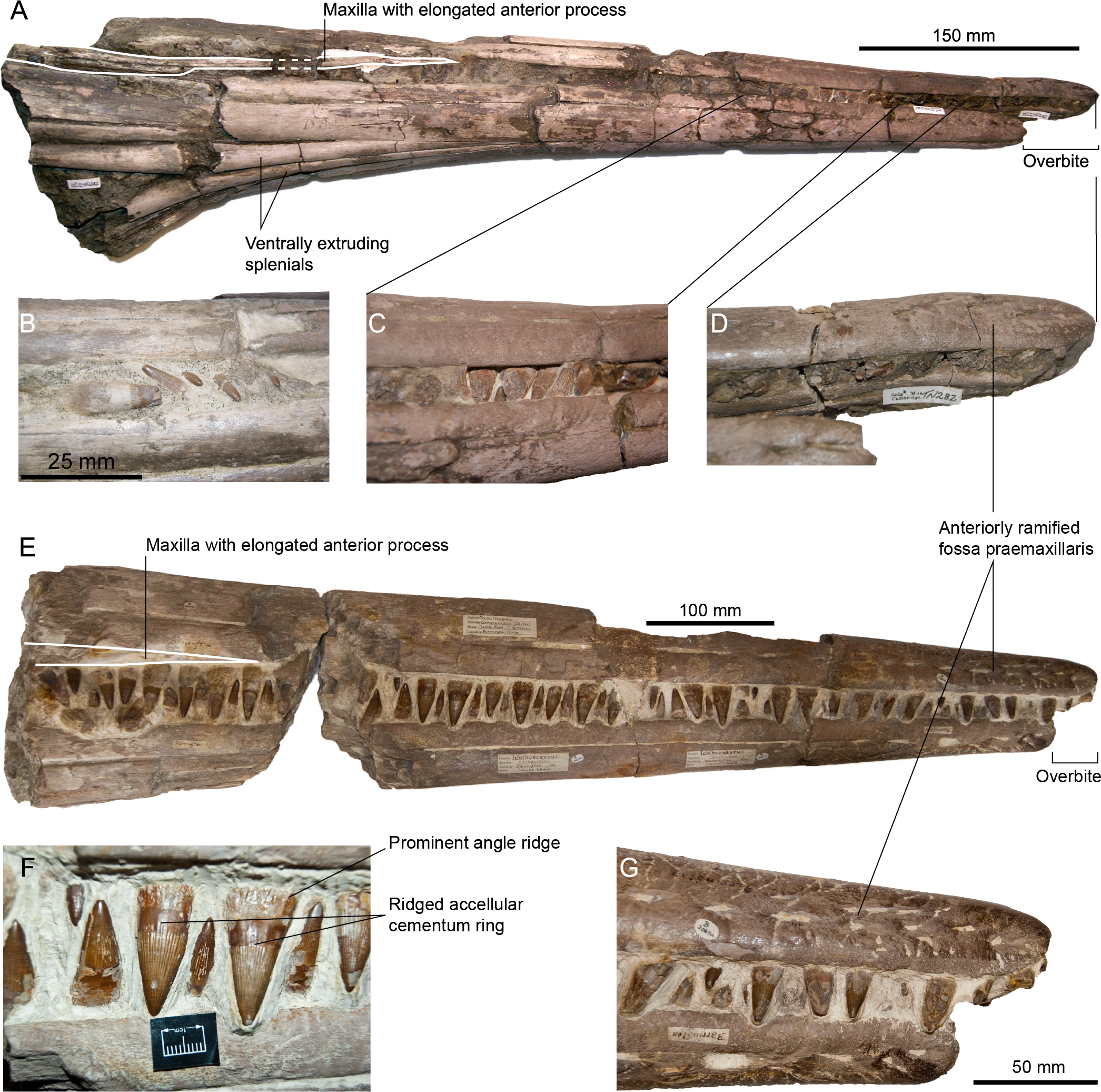 주둥이의 편평한 구조가 존재한다. 아캄프토넥테스나 롱기로스트리아속으로 여겨지는 Platypterygius australis에서도 유사한 구조가 확인되었다.[2][6] |