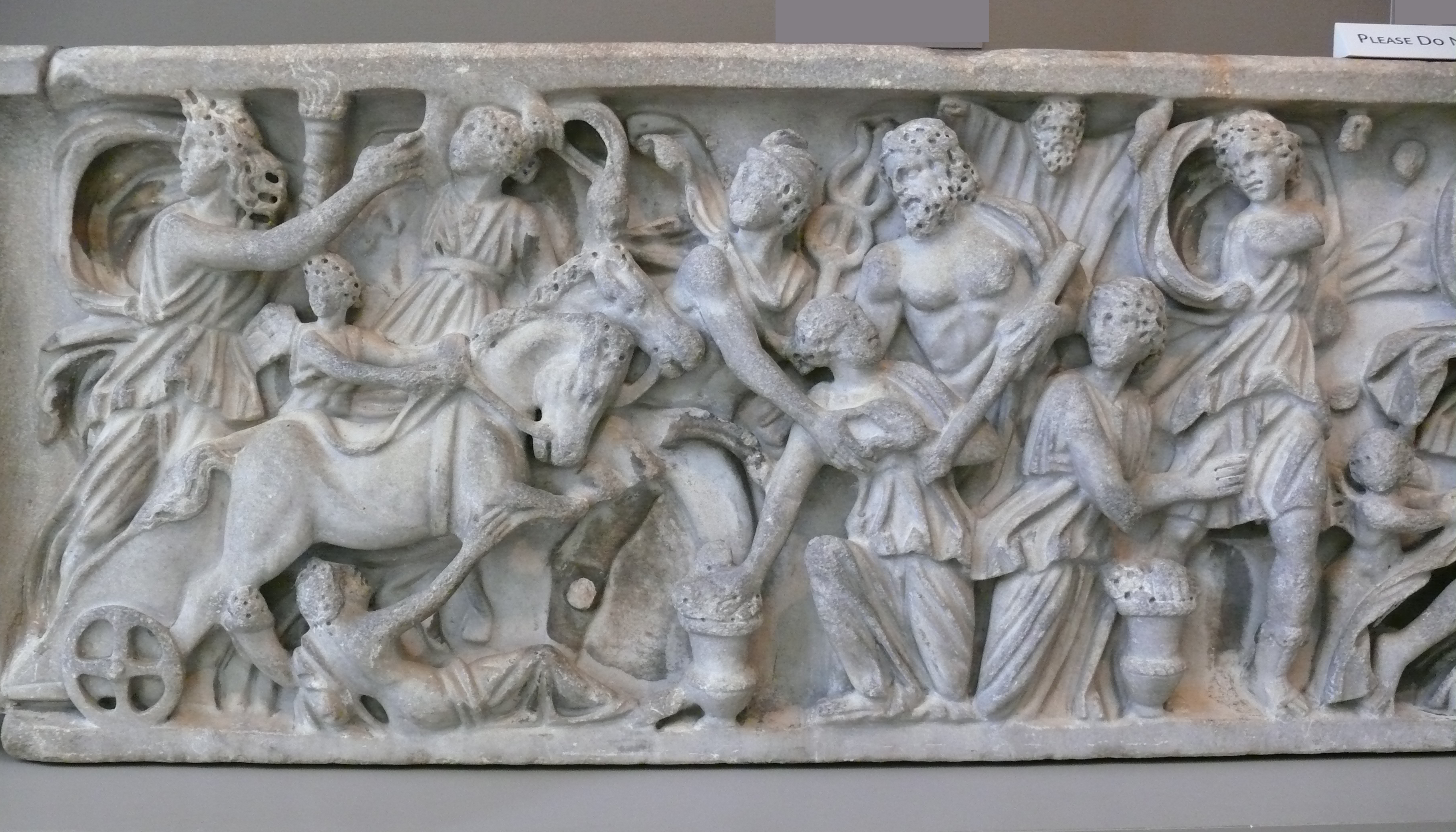 신화에 따르면 페르세포네(당시 코레)는 아테나와 아르테미스처럼 영원한 처녀일 것을 맹세했기 때문에 아프로디테는 에로스의 화살로 저승의 왕 하데스를 쏘는 것을 계획했다[154]。 마침 페르세포네는 님프 (요정)들과 함께 꽃을 따고 있었다[155]。
