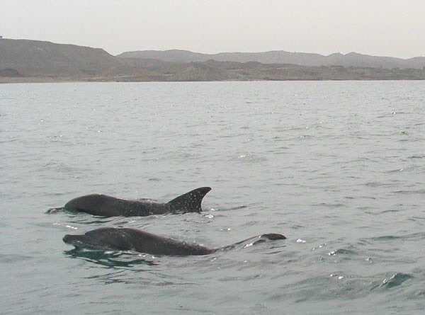 돌고래와 낫돌고래는 페르시아만에서 가장 흔한 해양 포유류이며, 범고래를 포함한 큰 고래는 드물게 발견된다.[56] 과거 상업적 포경과 1960~70년대 소련과 일본의 불법 포경으로 인해 고래 개체 수가 급감했다.[57][58][59] 브라이드고래[60][61][62][63], 옴우라고래[69][70], 밍크 고래 등은 여전히 페르시아만과 주변 해역에서 관찰되지만, 멸종 위기에 처한 아라비아 혹등고래[67]는 매우 드물게 발견된다. 2017년, 아부다비 연안에서 세계 최대 규모의 인도양혹등돌고래 개체군이 발견되었다.[75][76][77] 듀공은 페르시아만에서 발견되는 또 다른 특이한 해양 포유류로, "바다 소"라고도 불린다.[78] 호주 다음으로 페르시아만은 듀공의 주요 서식지이지만, 최근 개발과 오염, 무분별한 사냥으로 인해 개체 수가 감소하고 있다.[78][79]