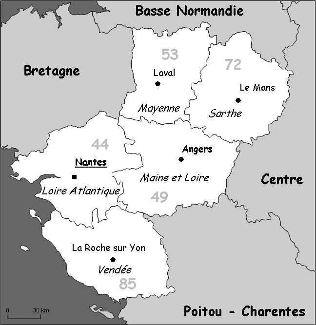 데파르트망 목록 | 루아르아틀랑티크주 (44) 멘에루아르주 (49) 마옌주 (53) 사르트주 (72) 방데주 (85) |