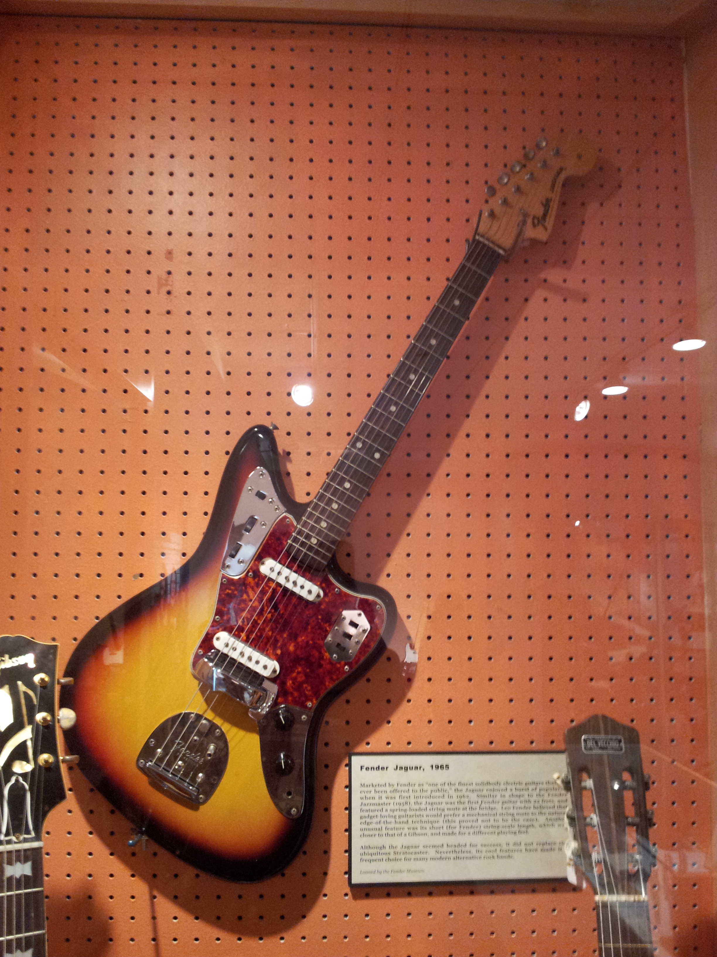 1990년대 초, 너바나의 커트 코베인이 사용하면서, 얼터너티브, 그런지 계열에서 인기를 얻었다.[8] 그의 모델은 픽업을 험버커로, 브릿지를 튠-O-매틱으로 바꾸는 등 대폭적인 개조가 이루어졌다. 2011년에는, 네버마인드 발매 20주년을 기념하여 펜더 USA(멕시코)에서 '65 모델을 커스터마이징한 "Kurt Cobain Jaguar"가 출시되었다.